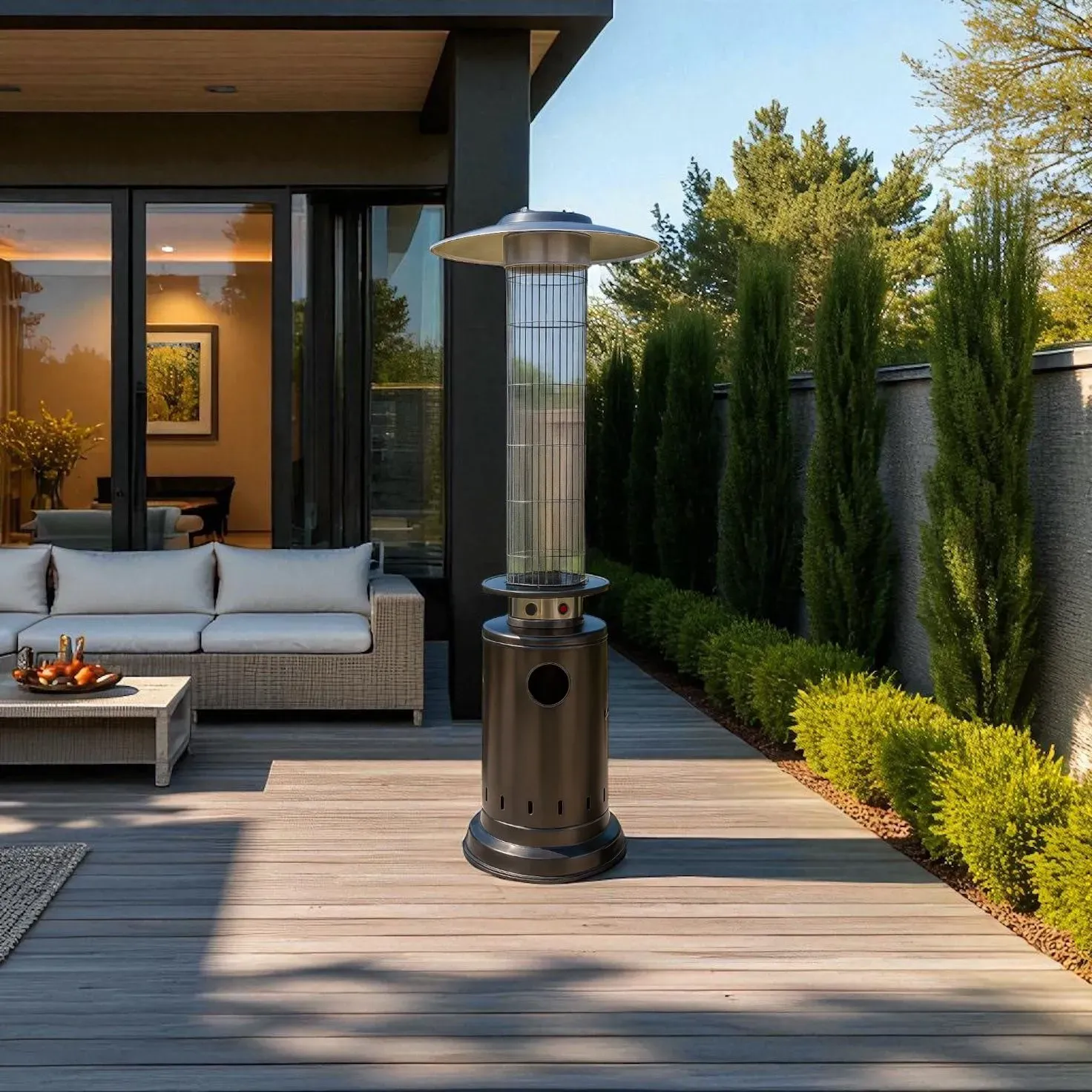 Disfruta de reuniones acogedoras incluso en las noches más frías con este calefactor exterior de alto rendimiento. Su quemador de acero inoxidable ofrece gran potencia de calor, ideal para mantener un ambiente confortable en espacios al aire libre como terrazas, patios y jardines.