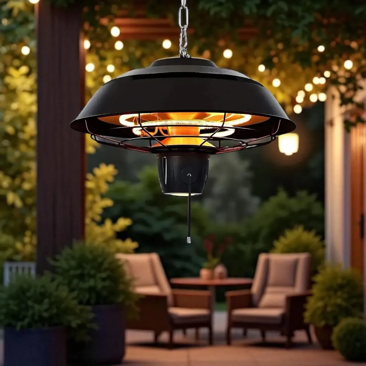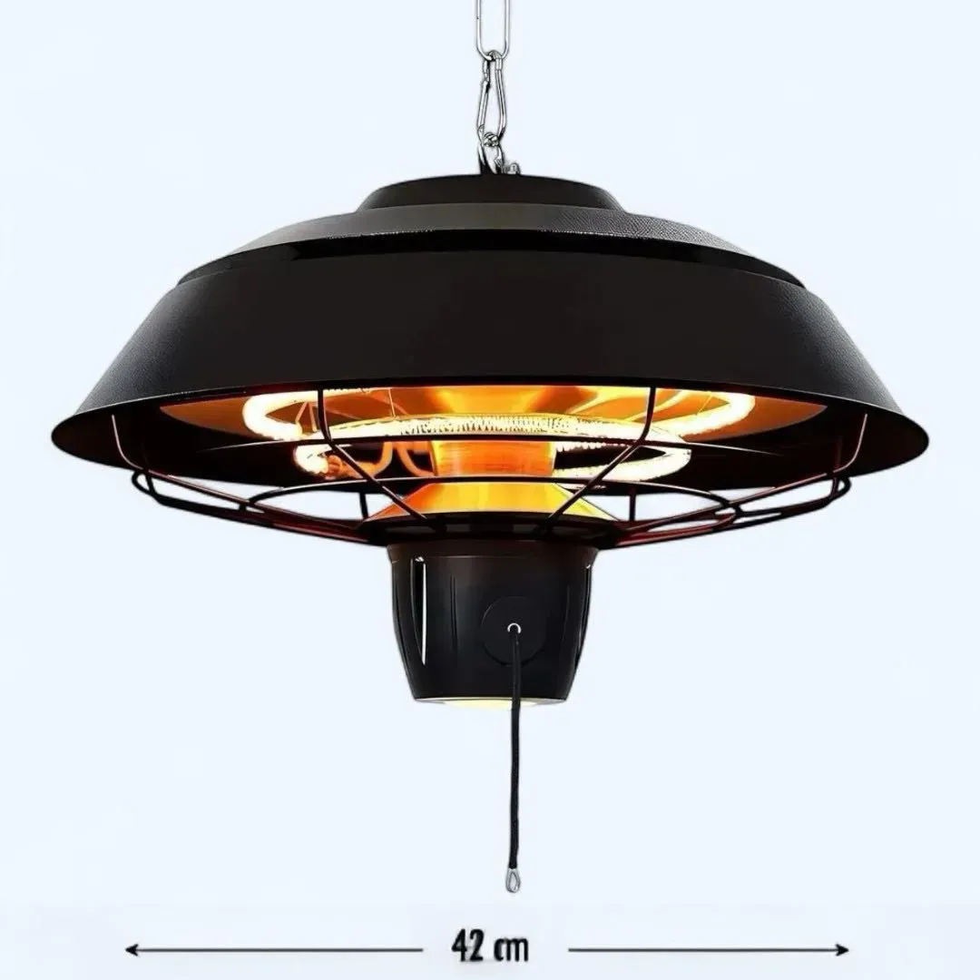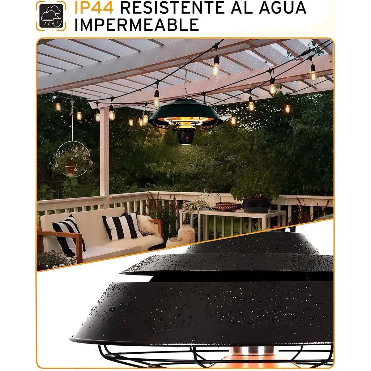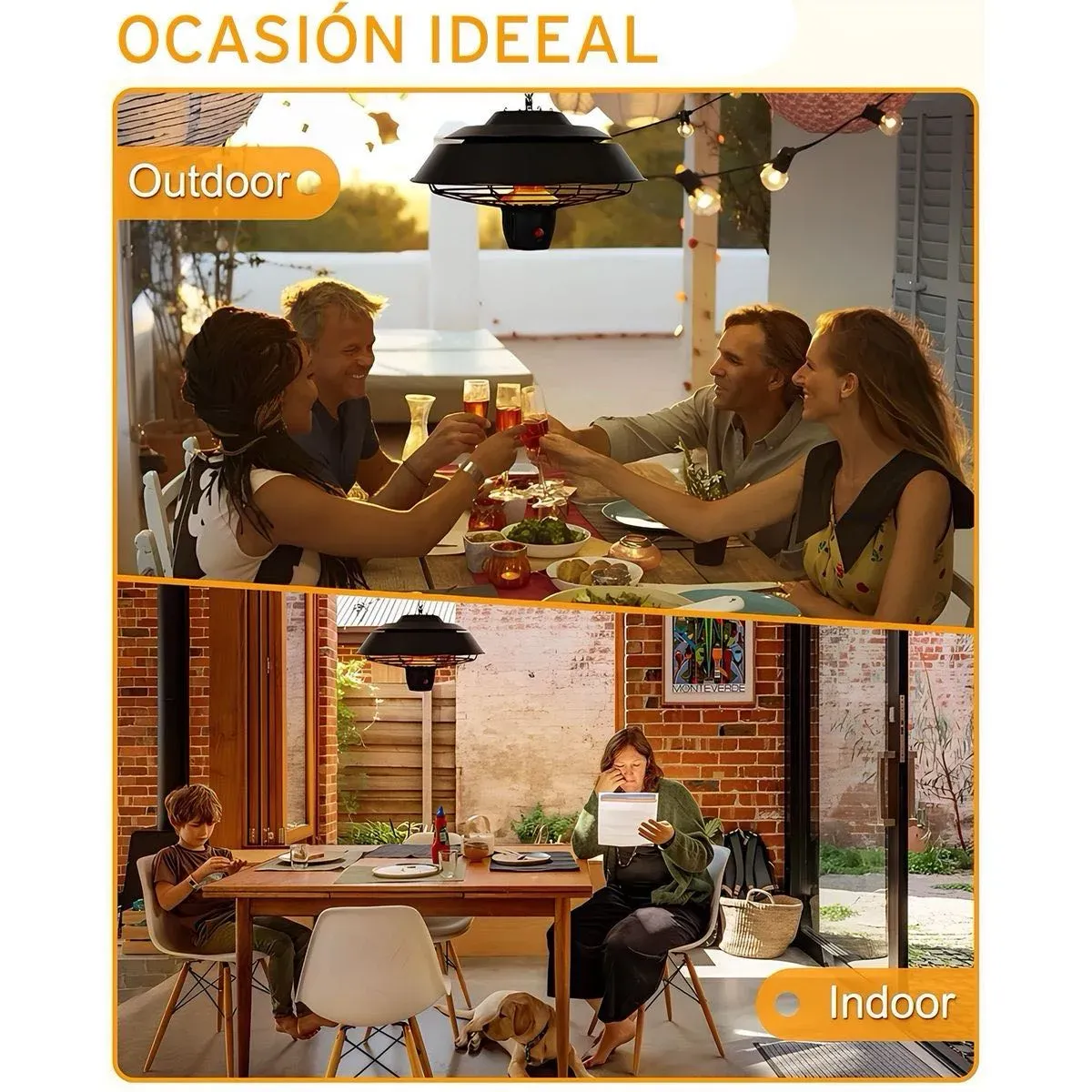 Lleva el confort a otro nivel con este calefactor colgante de 1500 W en elegante color negro, diseñado para uso en interiores y exteriores. Su estructura de metal resistente y protección impermeable lo convierten en la opción ideal para terrazas, patios, balcones o cualquier espacio donde quieras di...