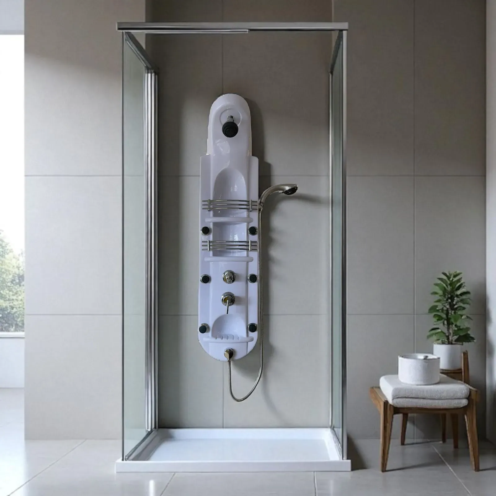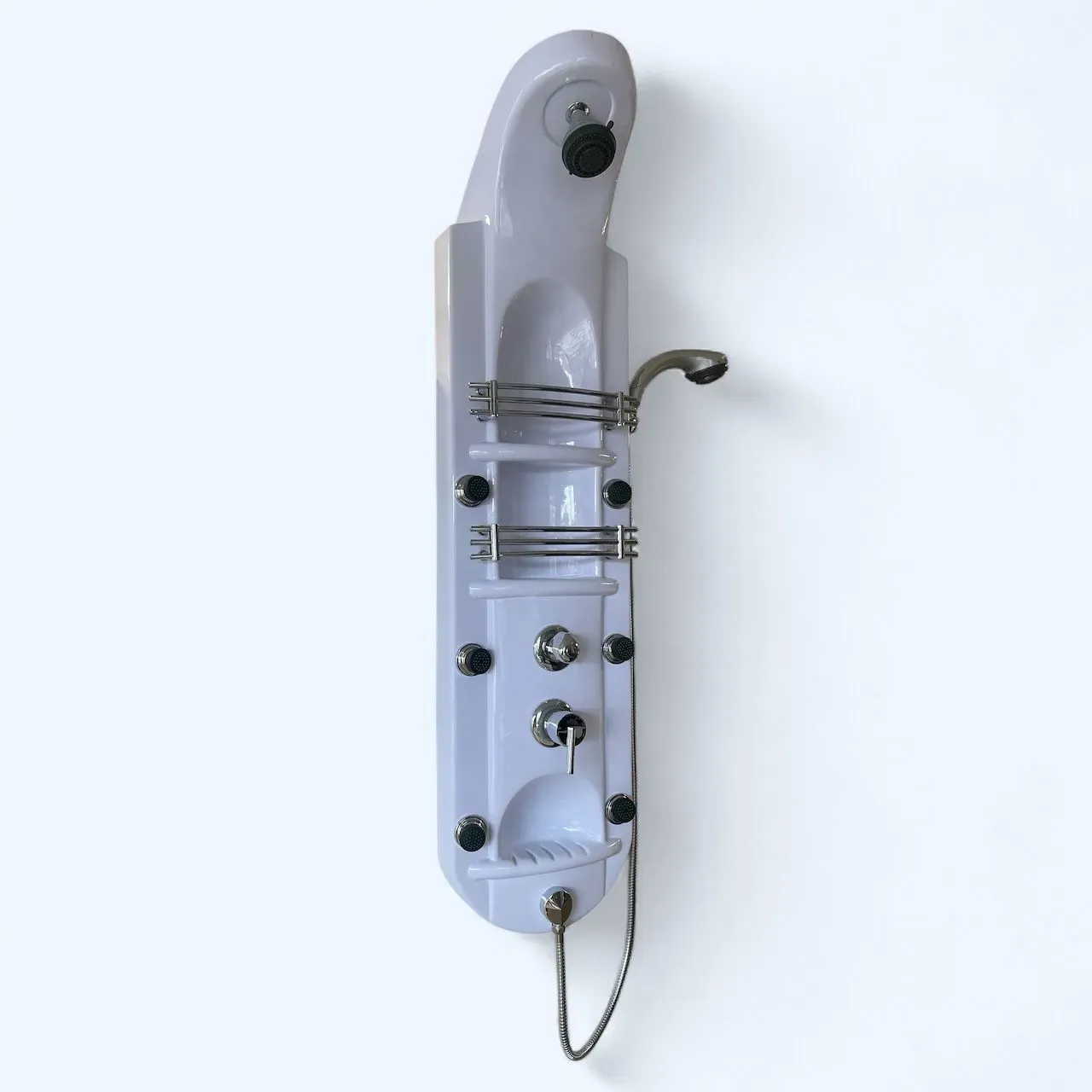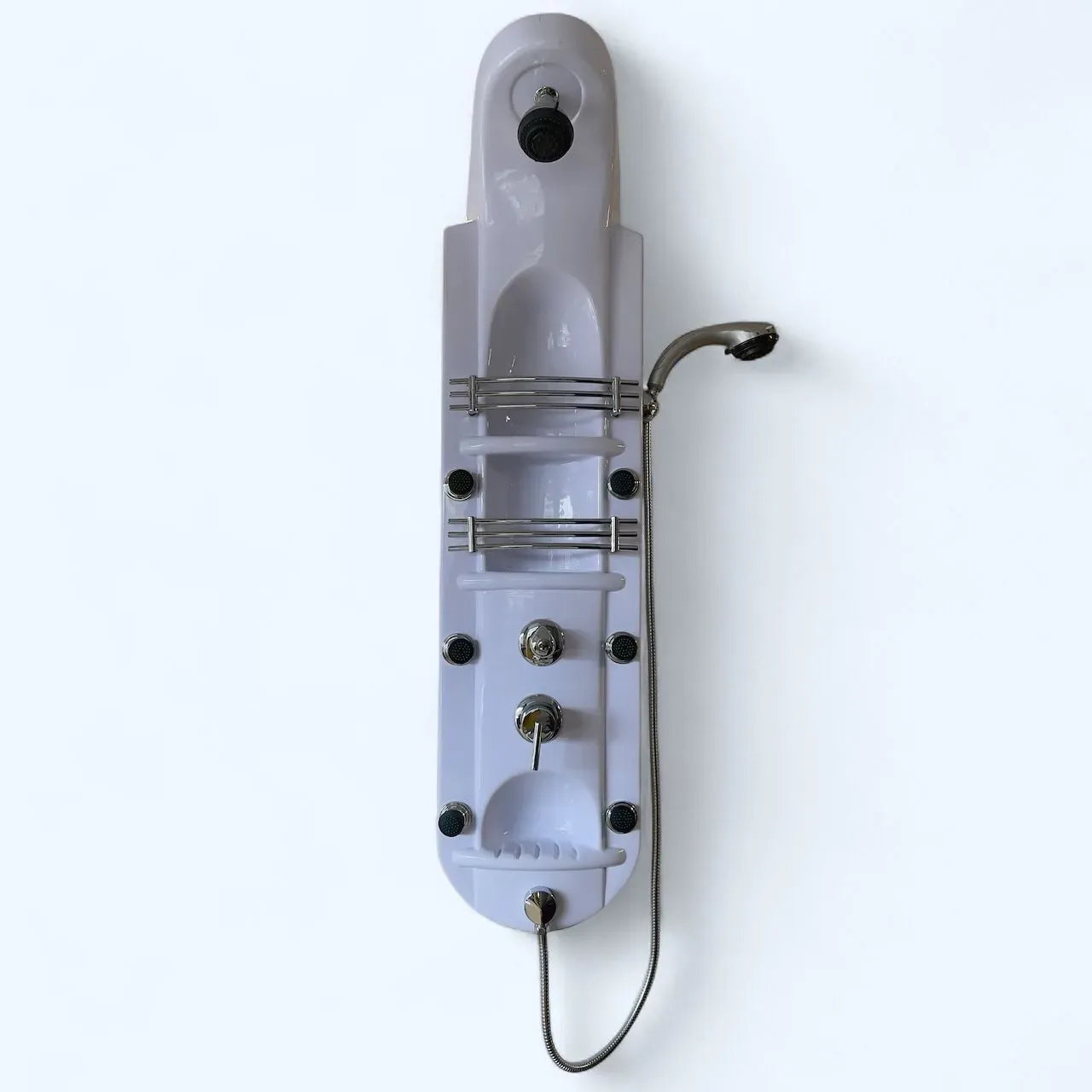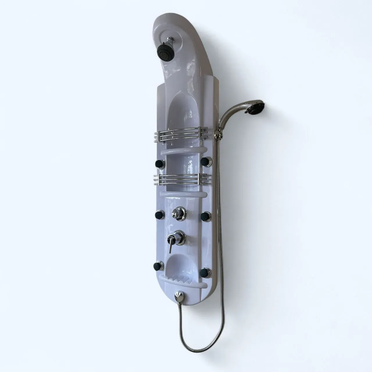 Renueva tu experiencia de baño con esta elegante columna de hidromasaje blanca, diseñada para brindar confort, relajación y funcionalidad en un solo producto. Fabricada en material resistente y fácil de limpiar, incorpora un sistema de 6 jets orientables que proporcio...