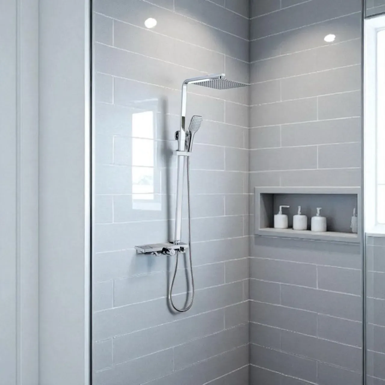 Controla la temperatura al instante gracias a su mezcladora termostática, ideal para baños seguros y confortables.