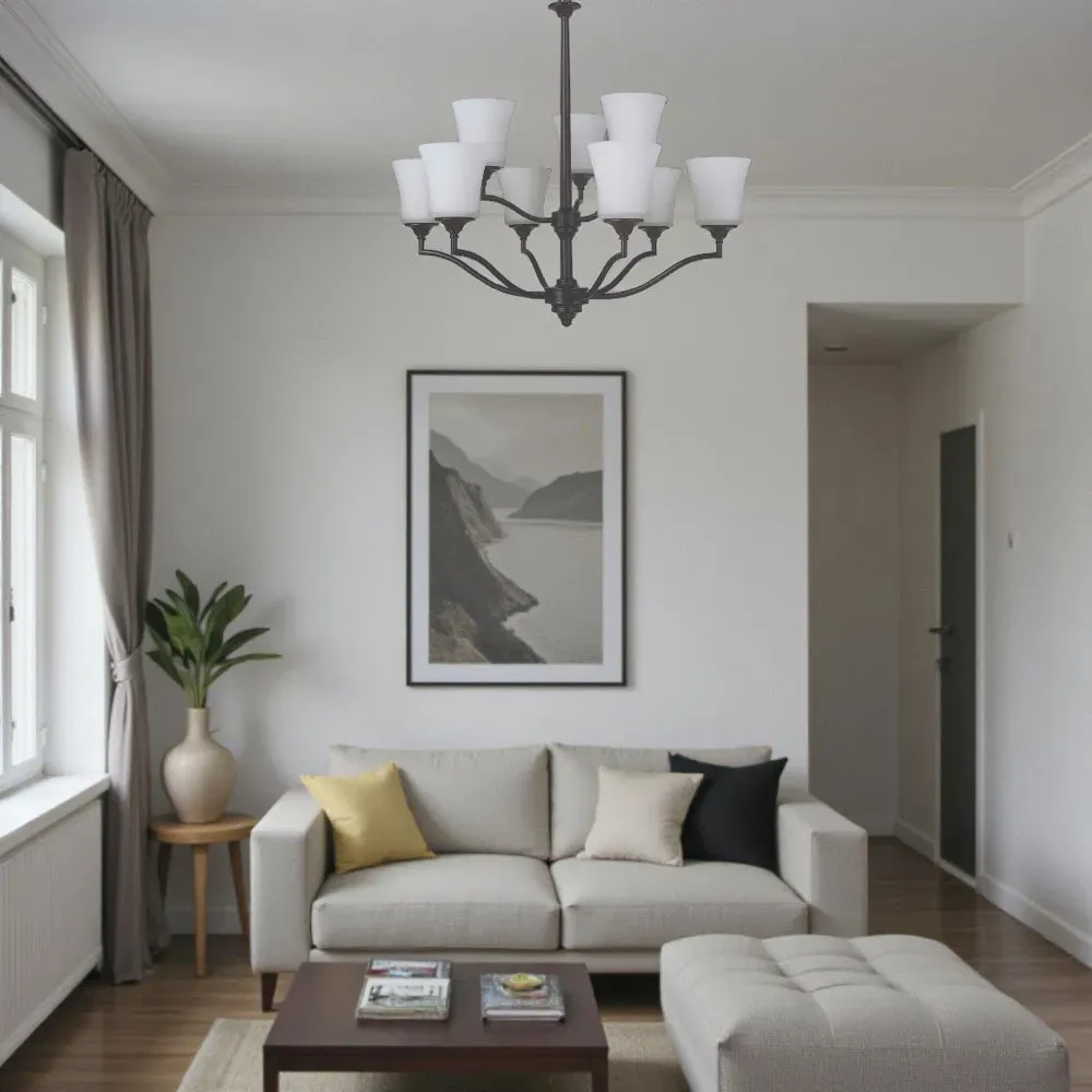 K28186-LAMPARA CHANDELIER TYNI 9XE27 METAL BRONCE OSCURO