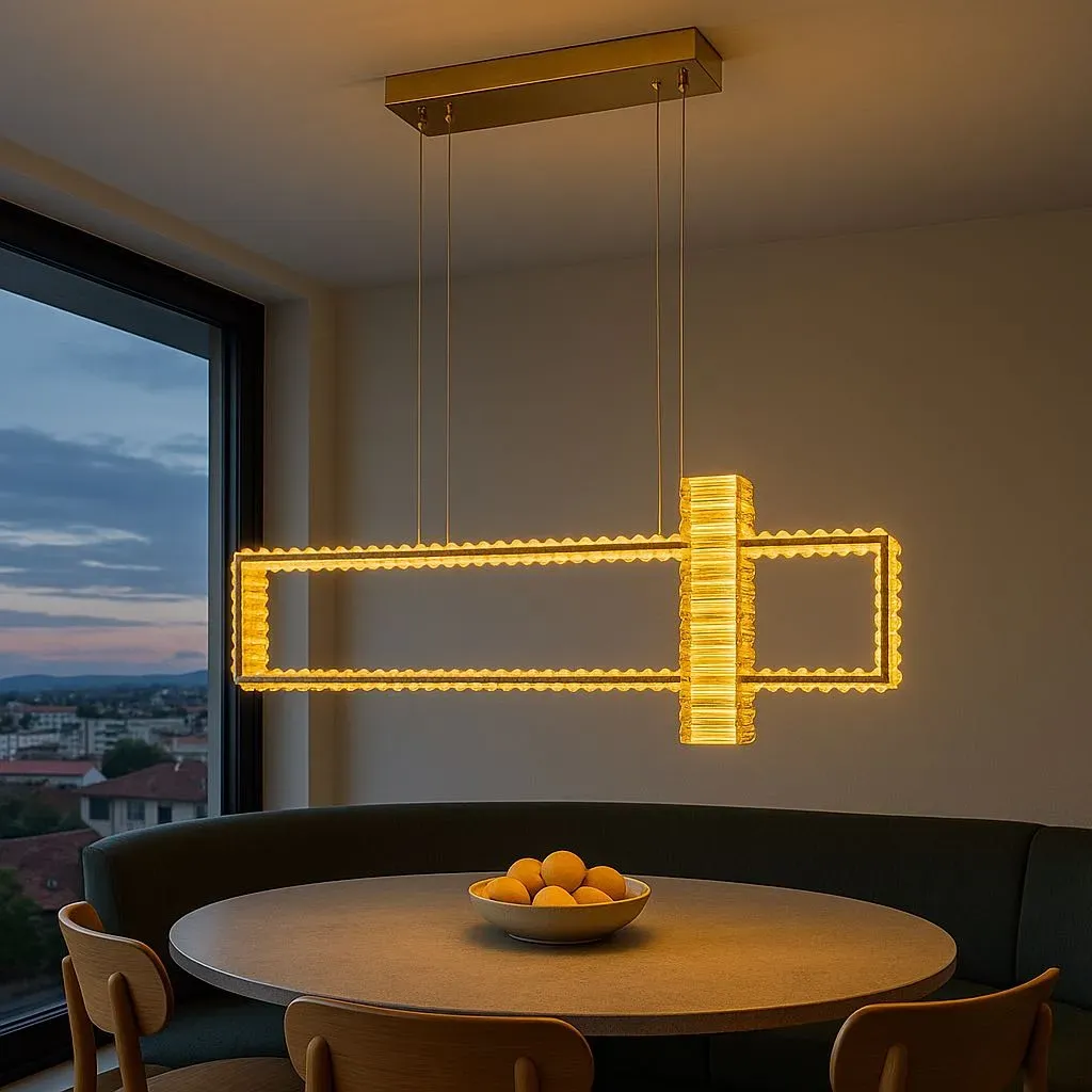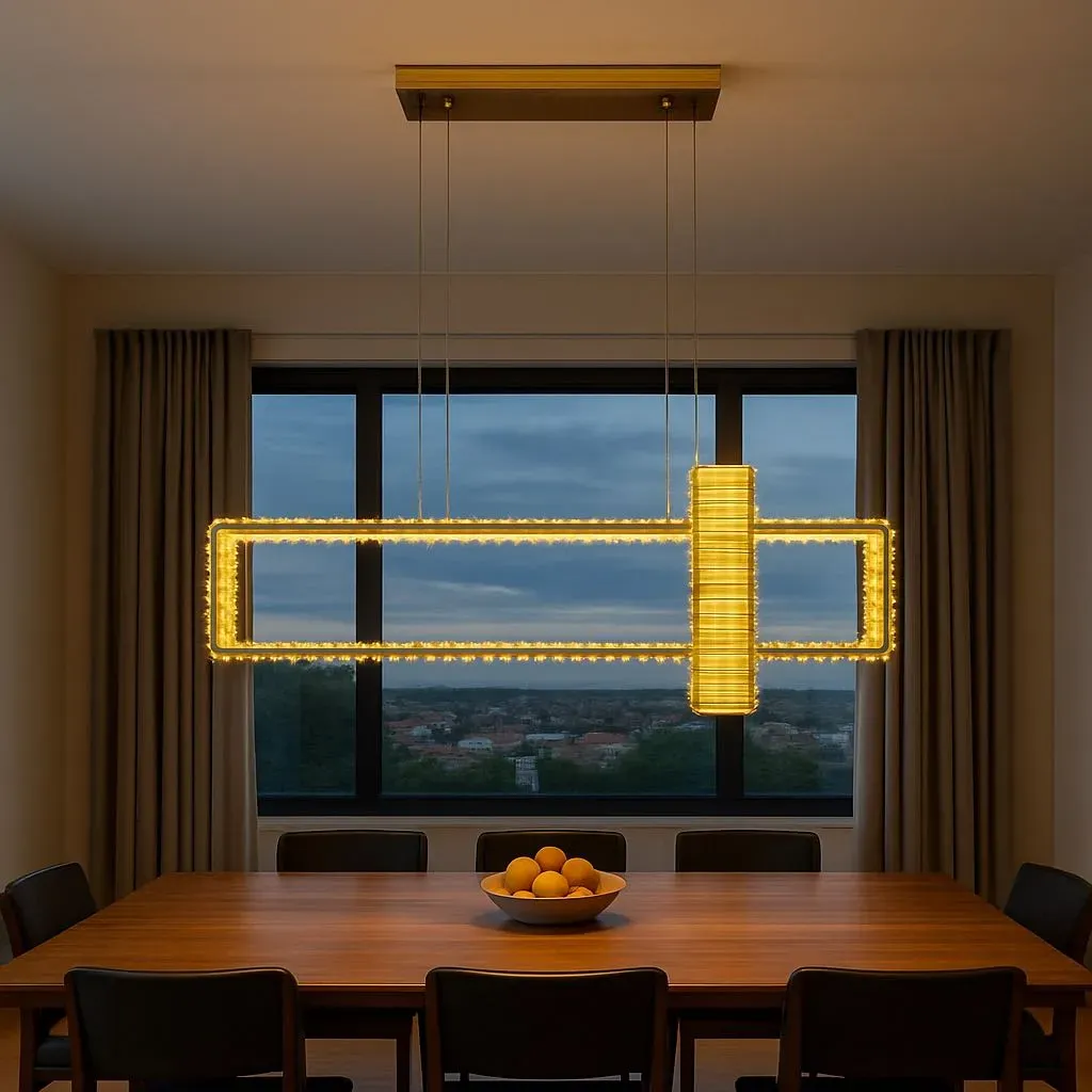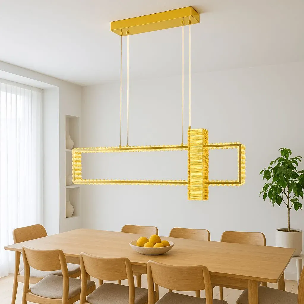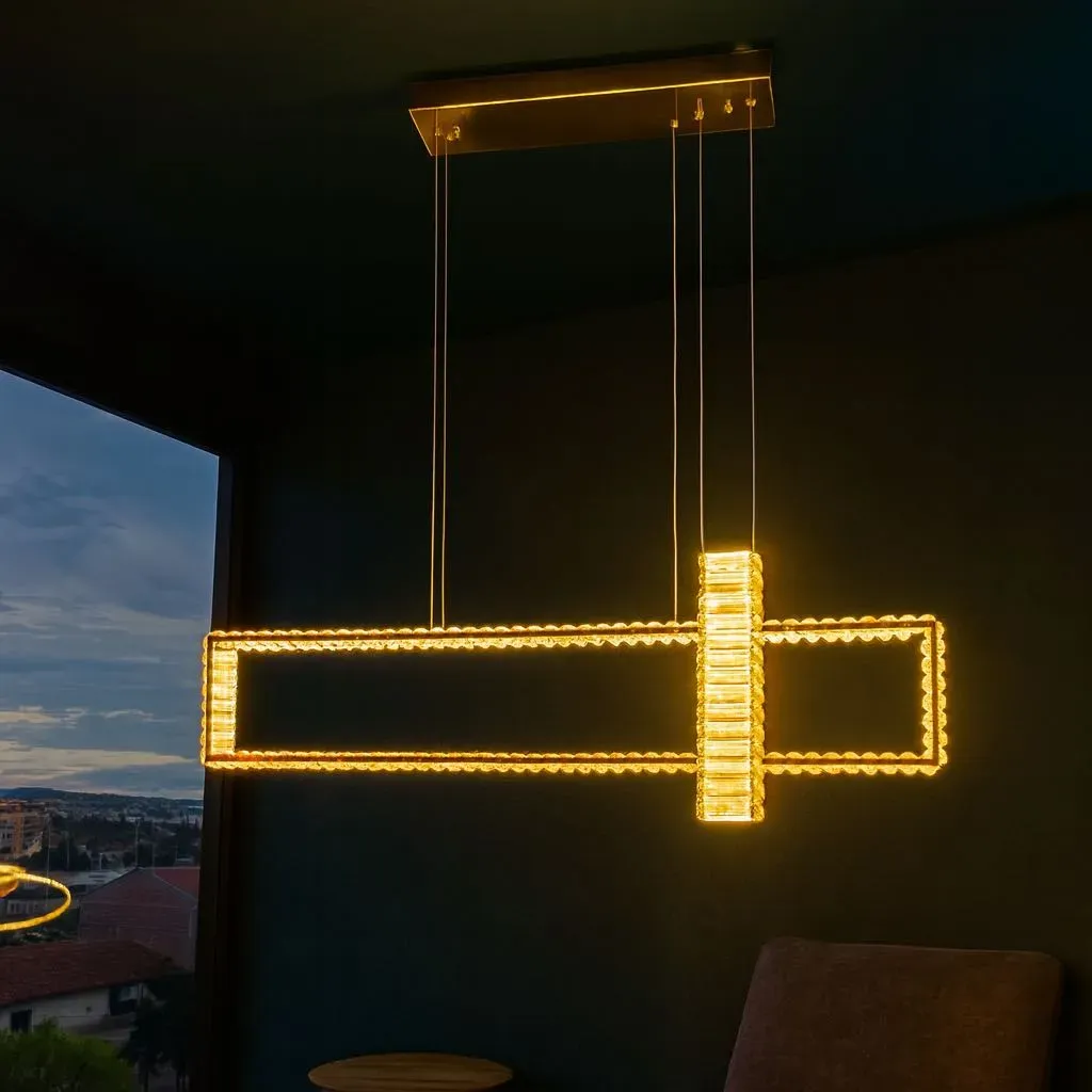 Ilumina tu hogar con estilo y elegancia con esta hermosa lámpara de cristal dorada rectangular. Con una temperatura de color cálida de 3000k, esta lámpara de diseño moderno de 120x30x90 cm es perfecta para decorar cualquier espacio con un toque de sofisticación.