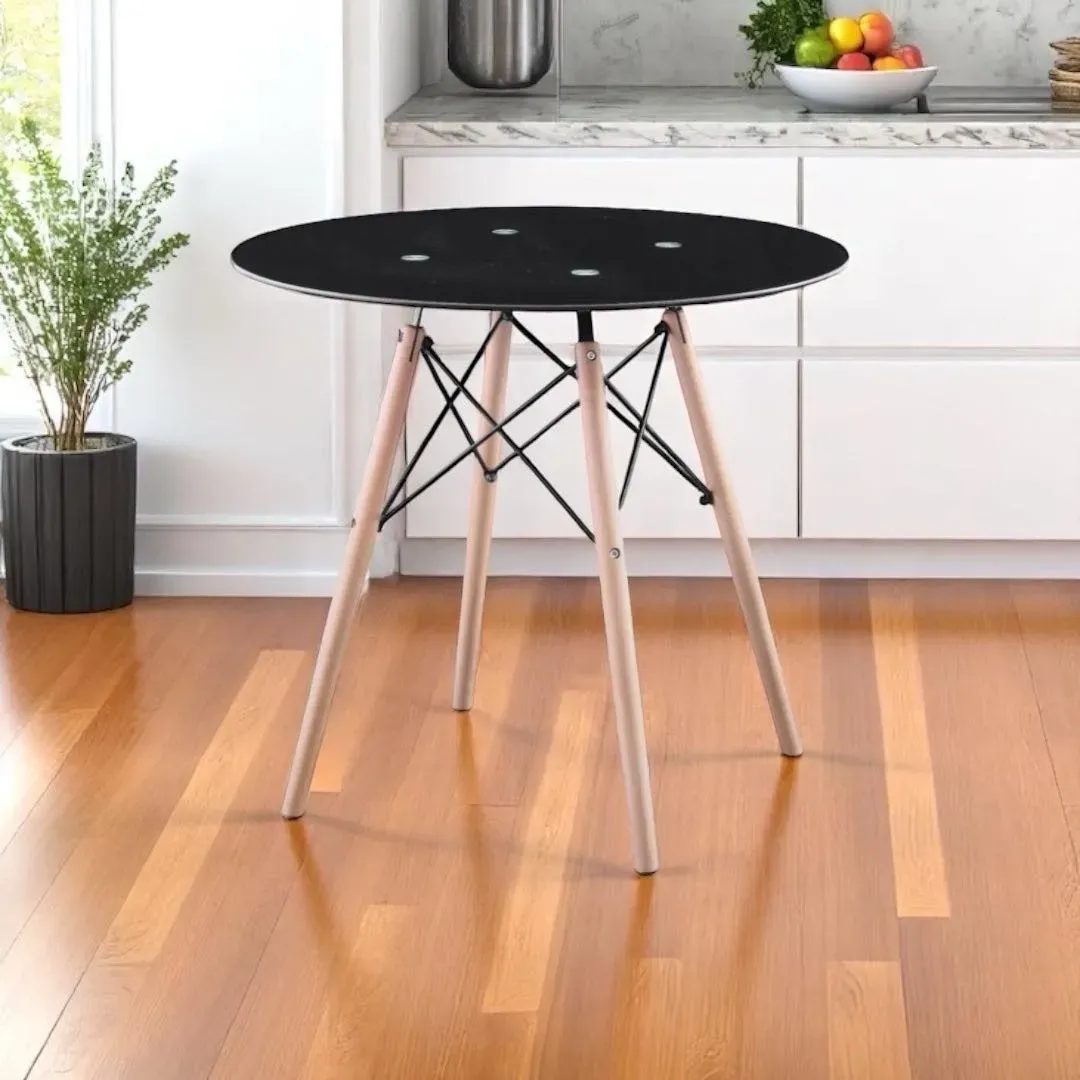 Mesa de comedor Eames 80cm vidrio Negra patas de madera 363621
