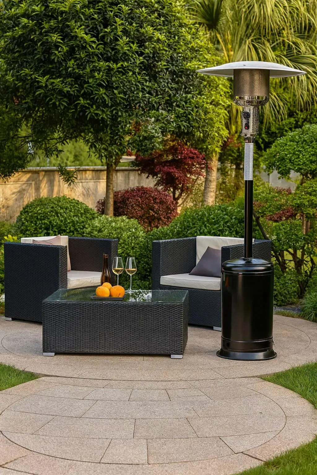Disfruta de tus espacios al aire libre incluso en las noches más frías con este calefactor exterior a gas en acabado negro mate, una pieza que combina potencia, diseño moderno y durabilidad. Su sistema de calor radiante distribuye la temperatura de manera uniforme alrededor, creando un ambiente cáli...