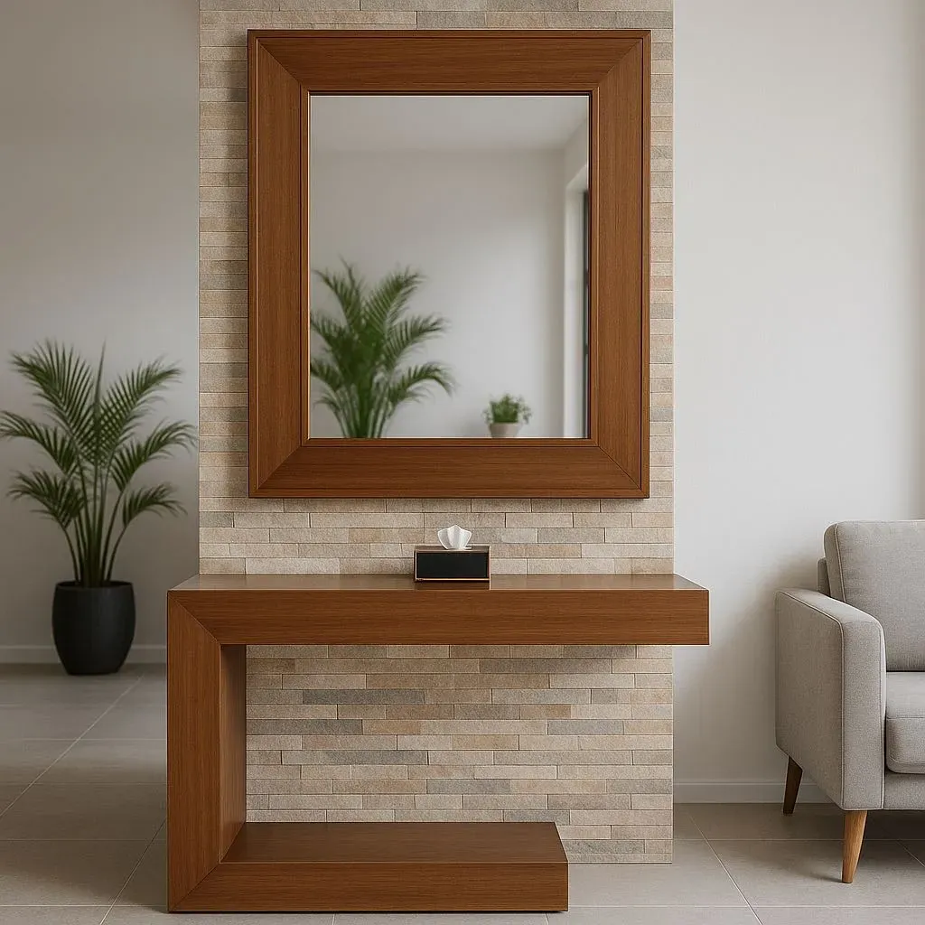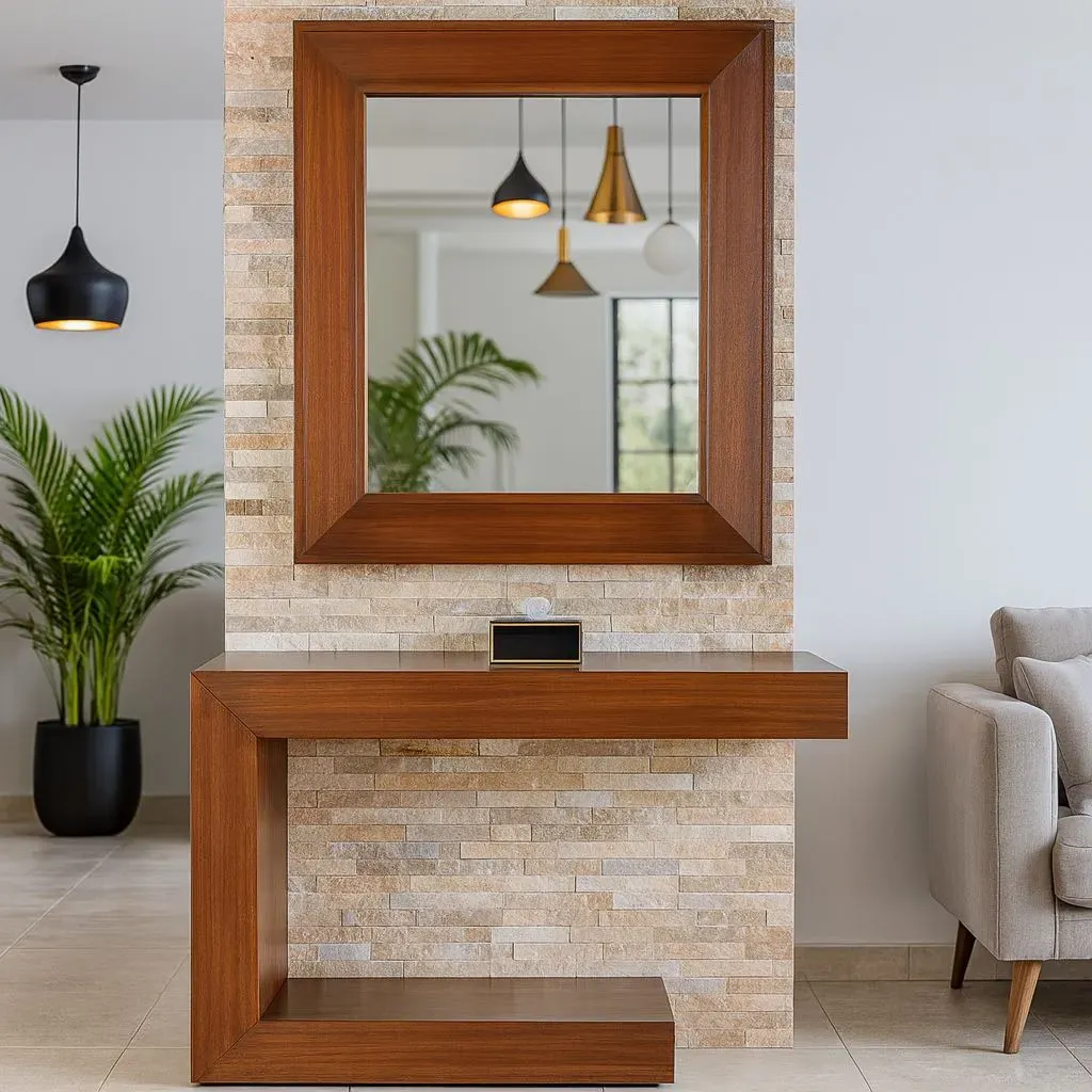 Consola de madera color nogal N2 con espejo