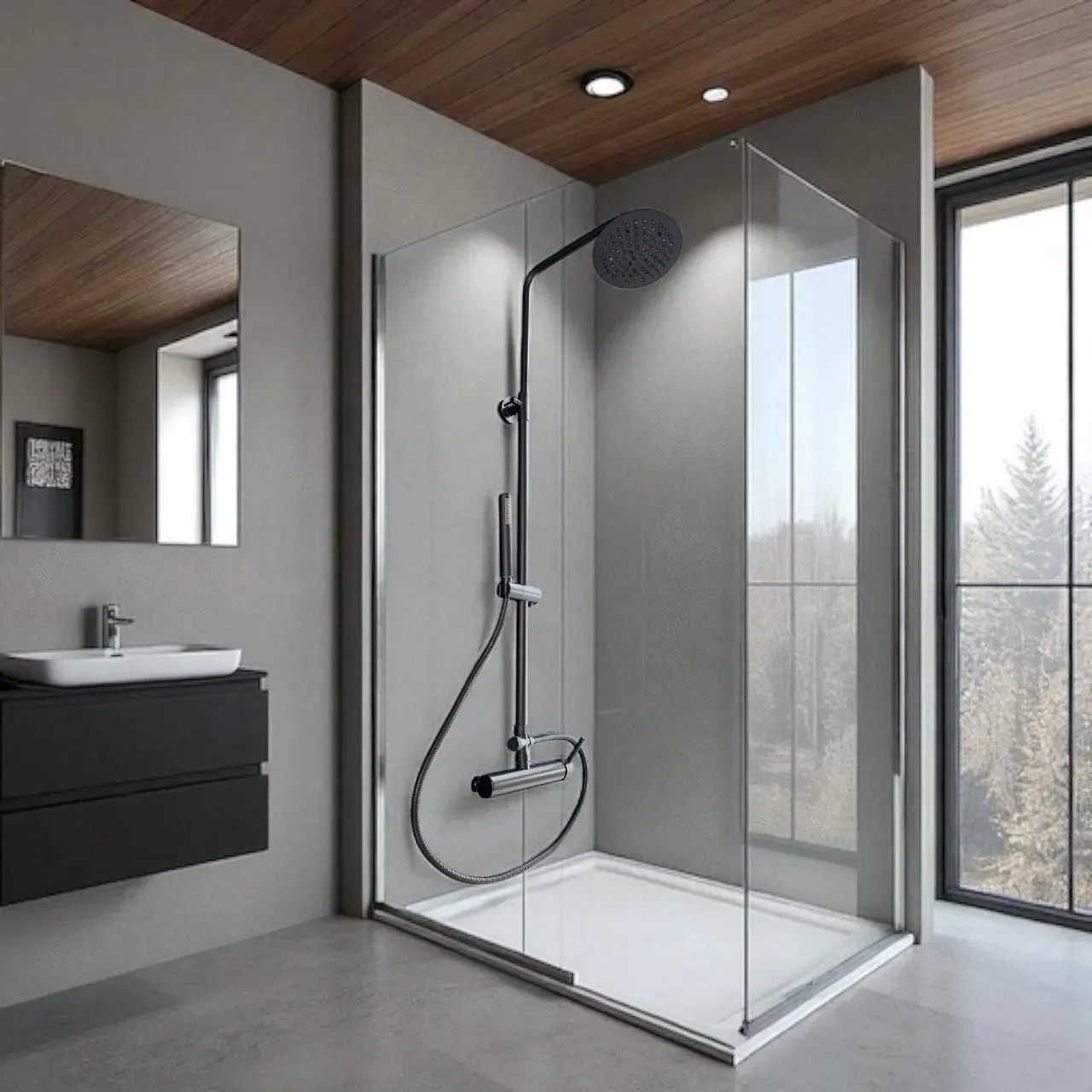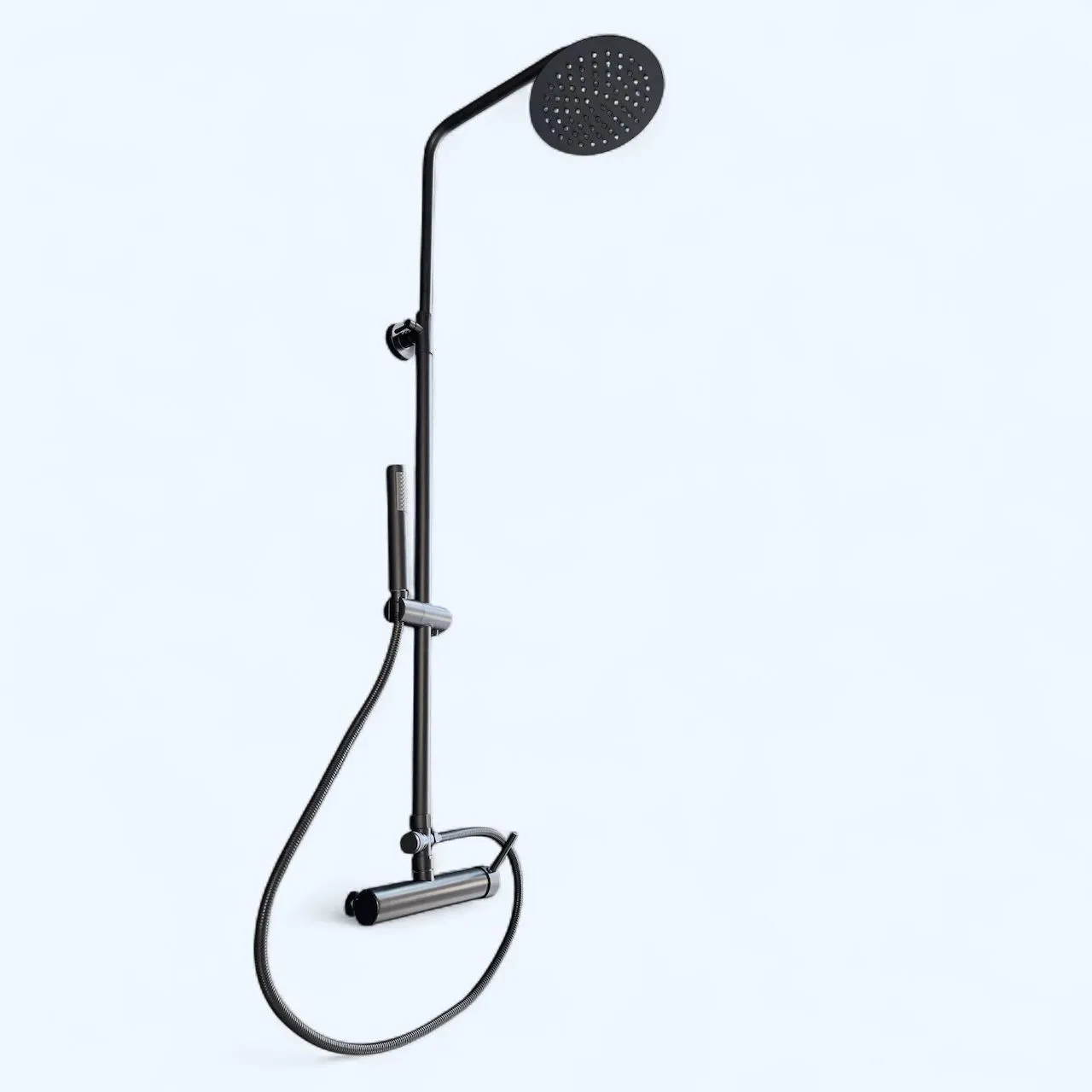 Moderniza tu baño con la sofisticación de la Grifería Volterra Negra, diseñada para brindar una experiencia de ducha cómoda, elegante y funcional.