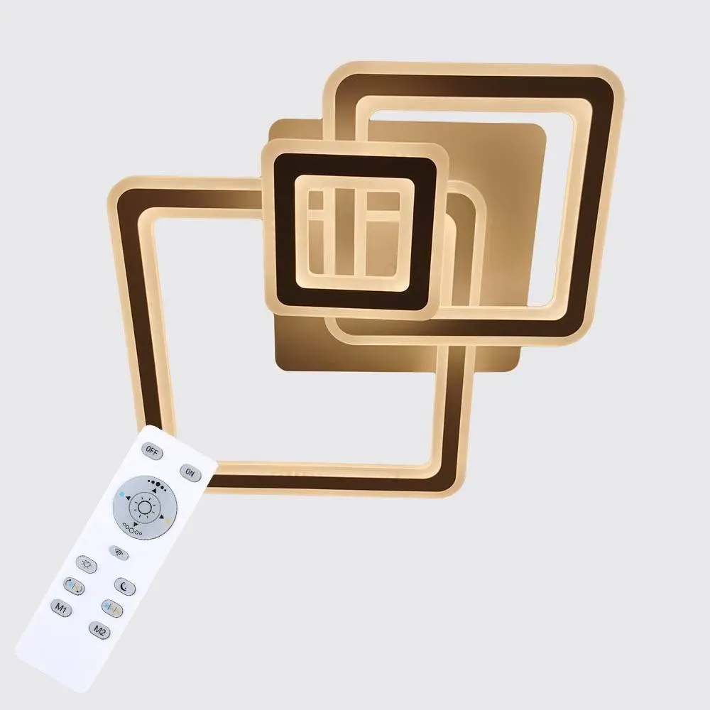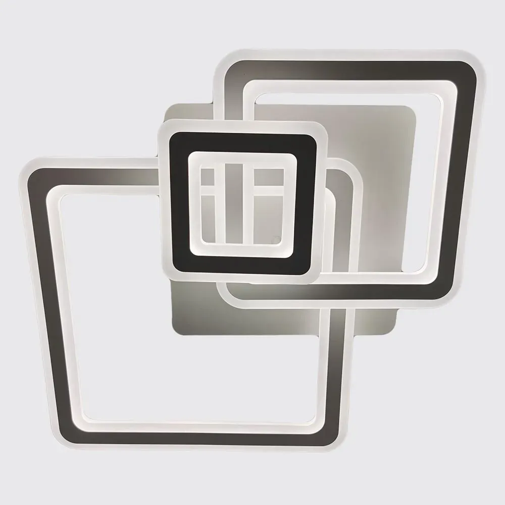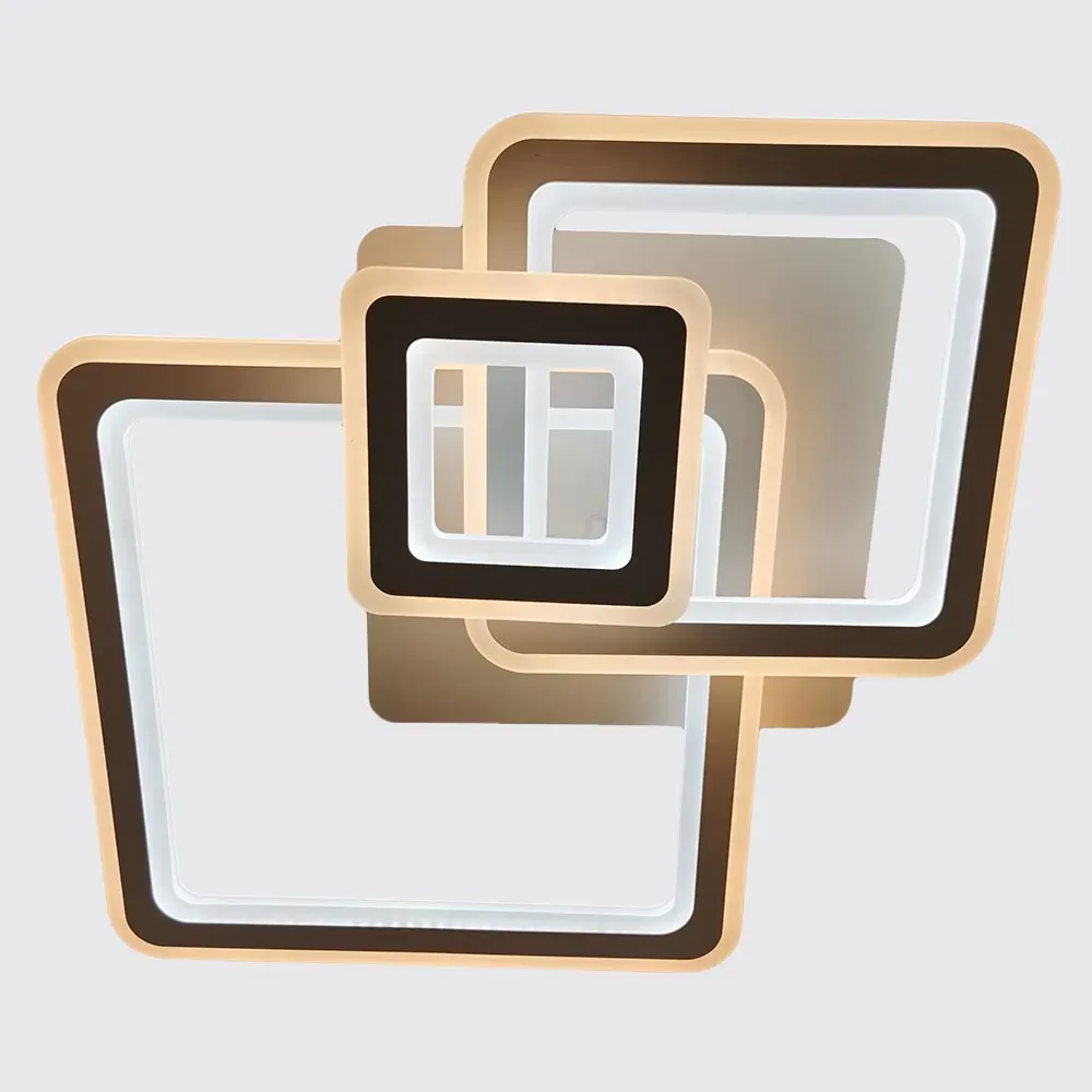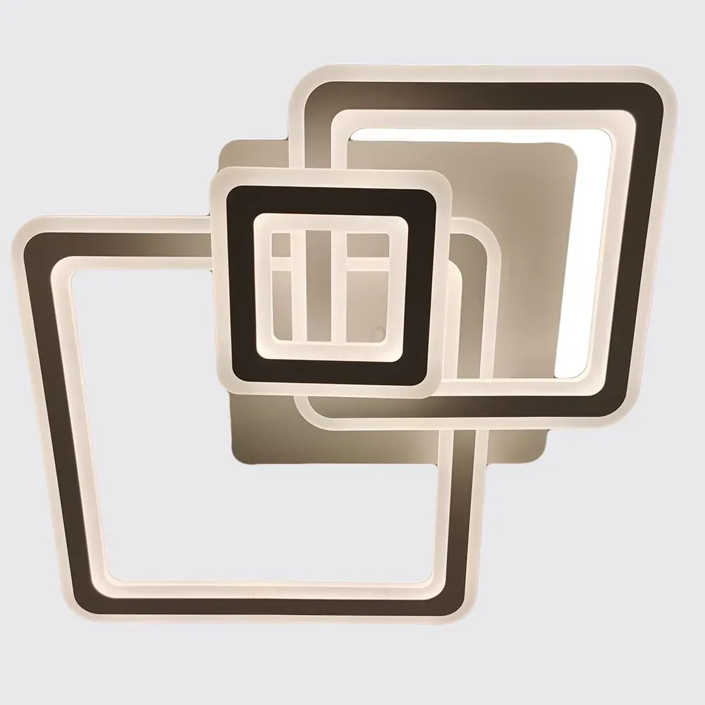 LAMPARA DE TUMBADO LED TRIPLEX CUADRADOS DE METAL BLANCO Y ACRÍLICO 3TONS DIM 60W 59X59X14 CM