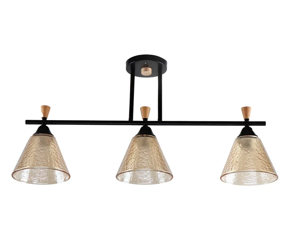 LAMPARA DE TECHO 3L E27 BK+WOOD L695XW155XH335MM
