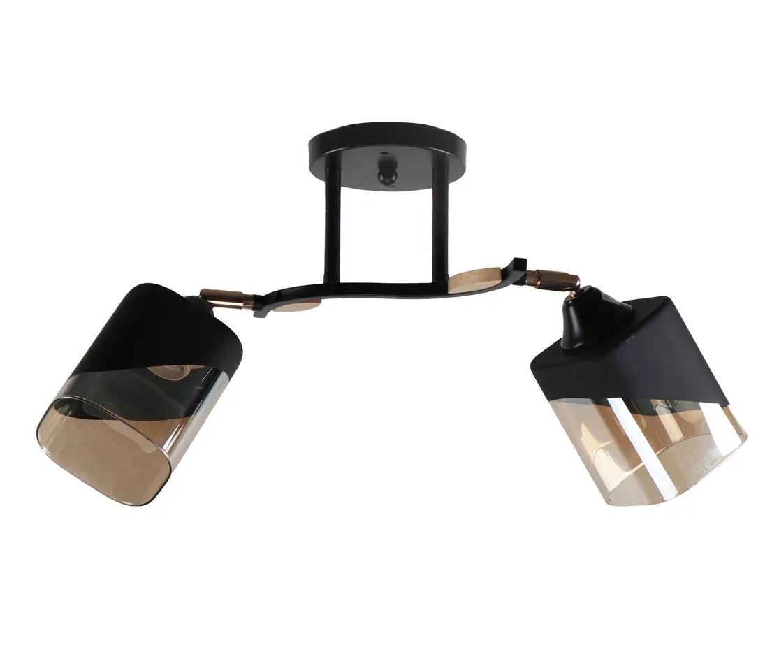 LAMPARA DE TECHO 2L E27 BK+WOOD L600XW160XH260MM