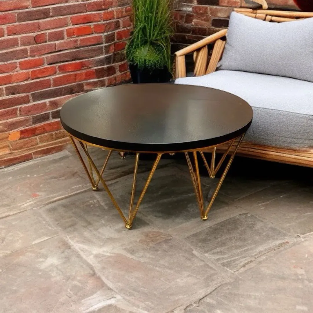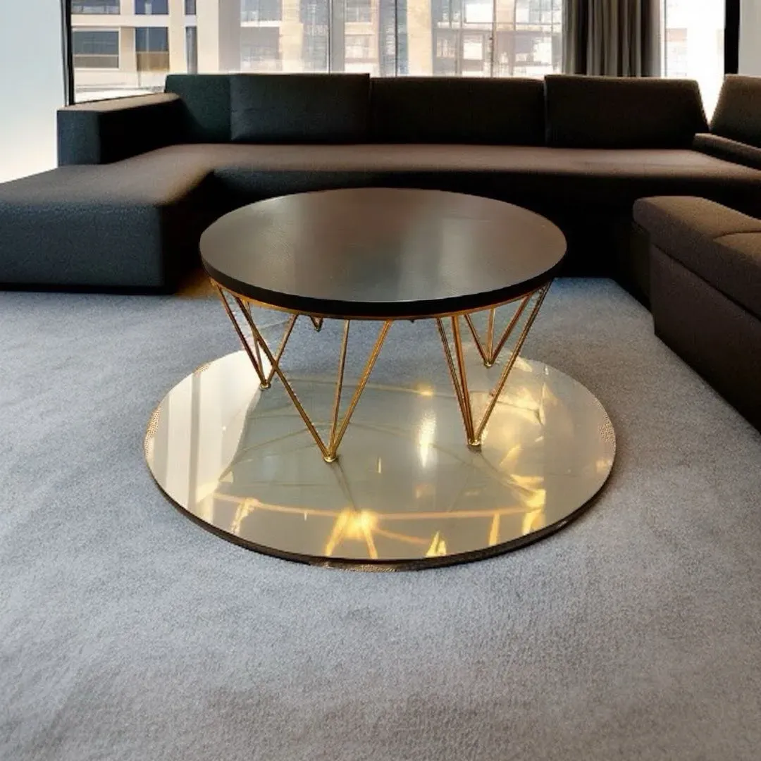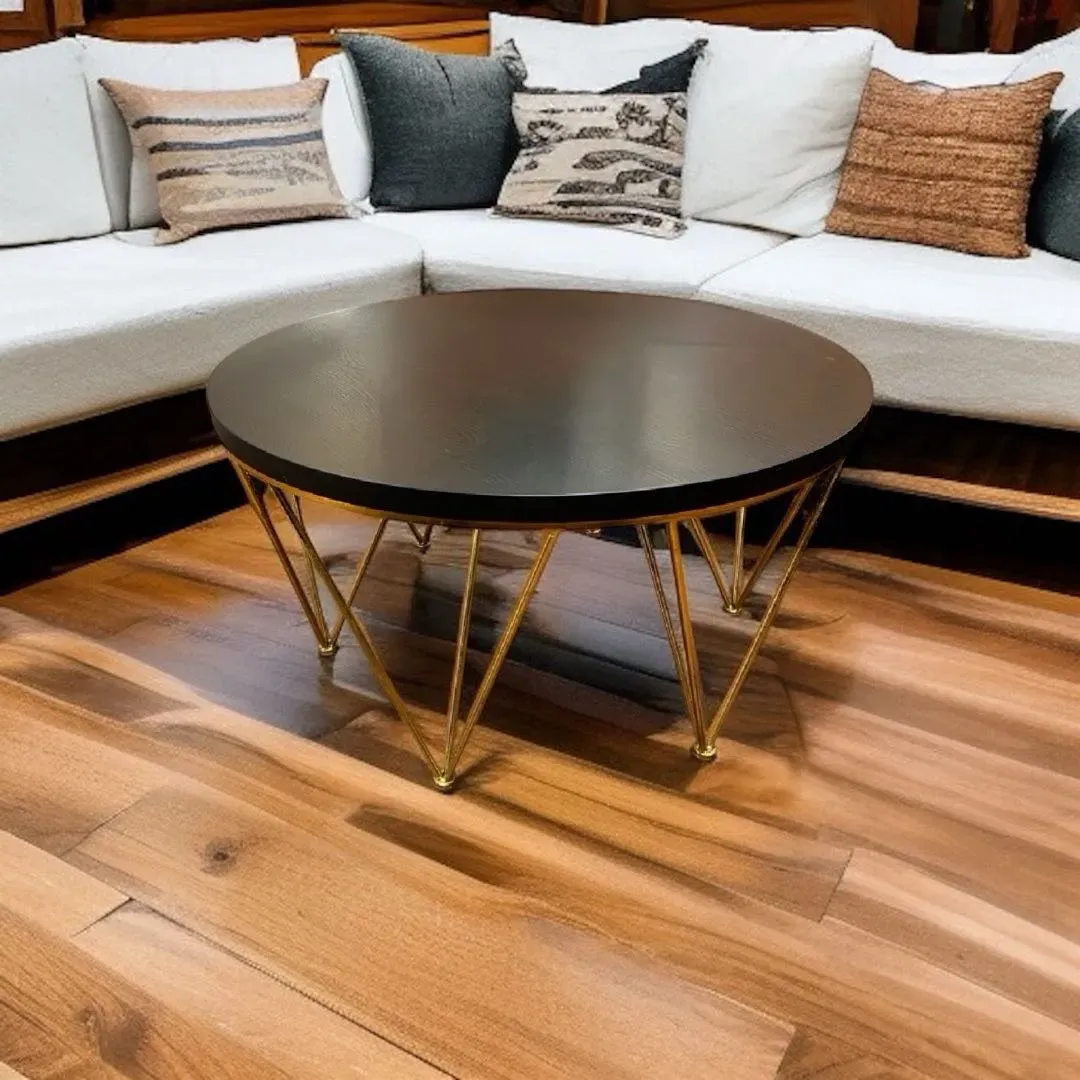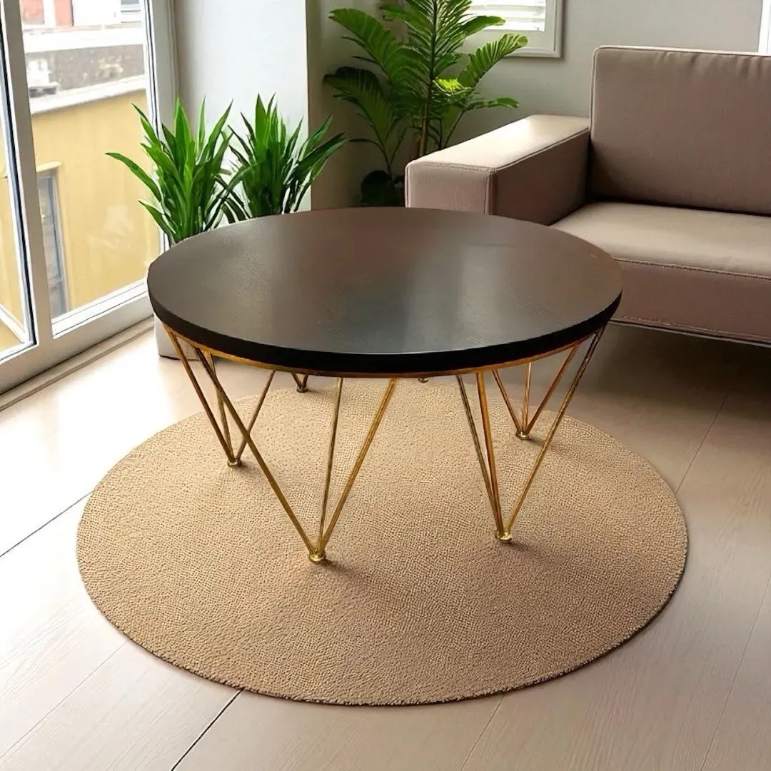 Esta elegante mesa de centro J9136 es perfecta para darle un toque de sofisticación a tu sala de estar. Con patas doradas de metal y un hermoso color Wengue, esta mesa redonda de 120cm de diámetro es ideal para crear un ambiente moderno y acogedor en tu hogar.
