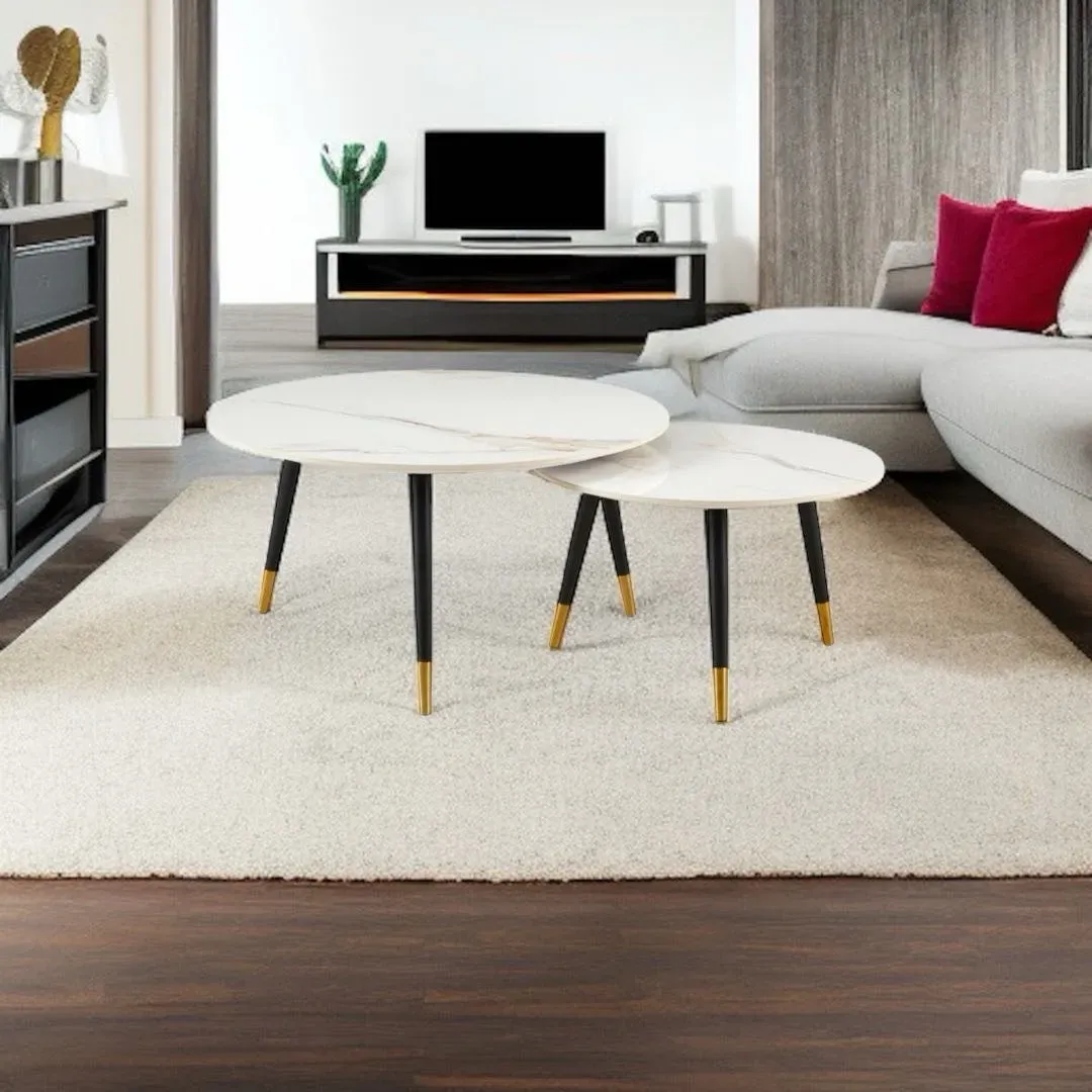 Mesa de centro sets Astrid 232362 color blanco 80x45 cm & 60x45cm material piedra Sinterisada patas de metal