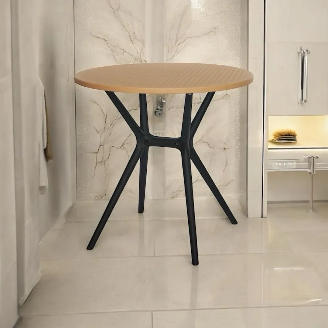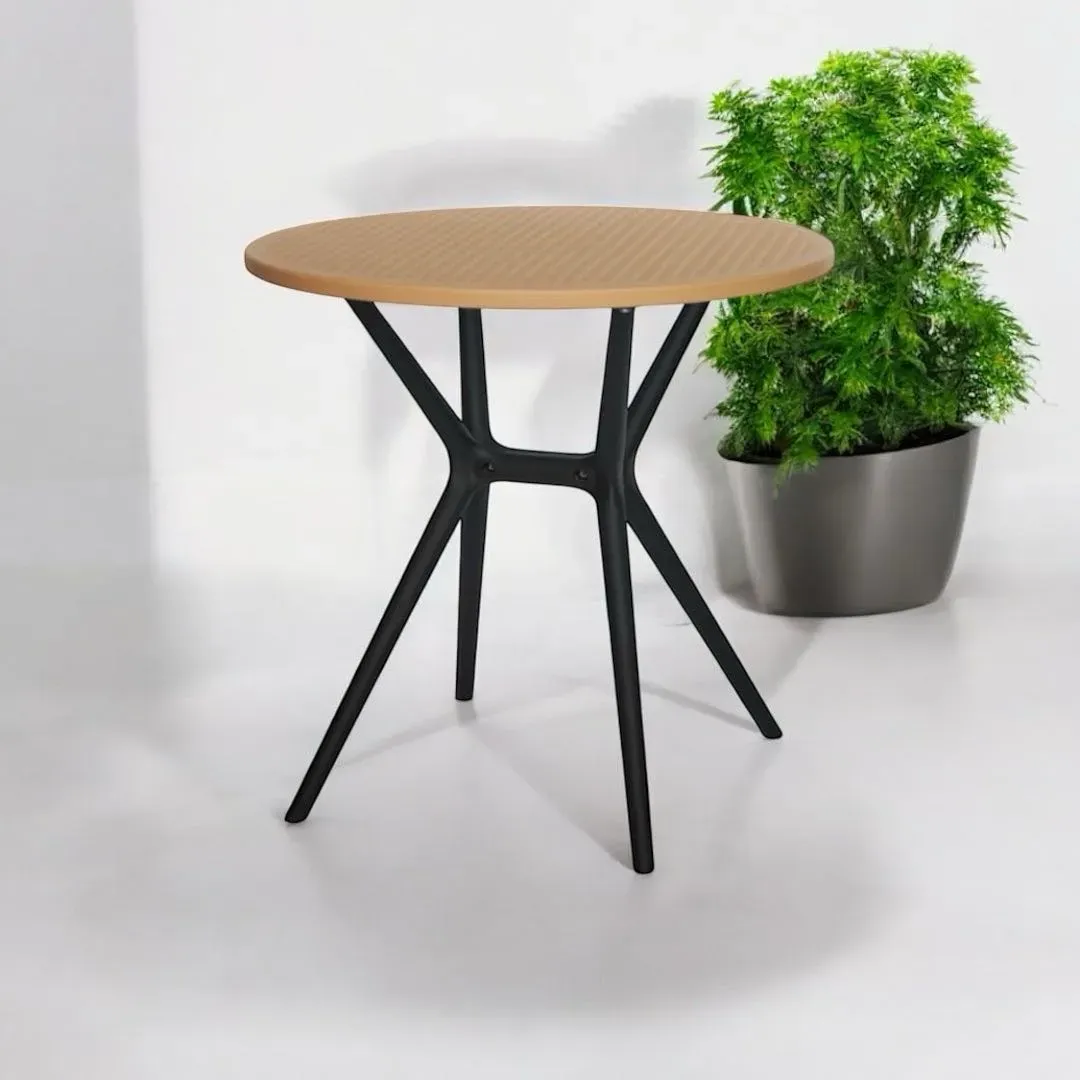 Mesa de comedor cross red PVC 252537 color beige base negra 65cm diámetro x73cm alto
