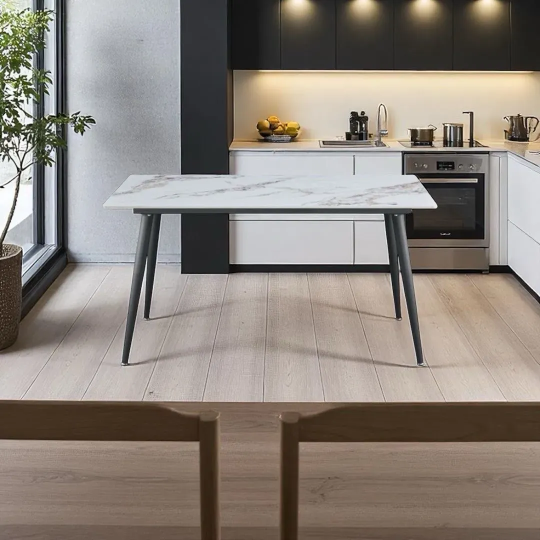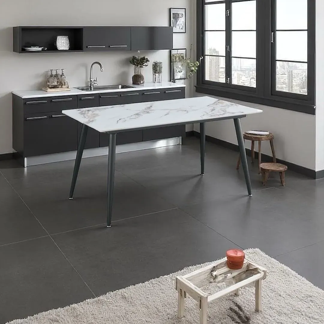 Mesa de comedor SAIKO 363619 140*80*76cm mesón de piedra sinterizada color blanco
