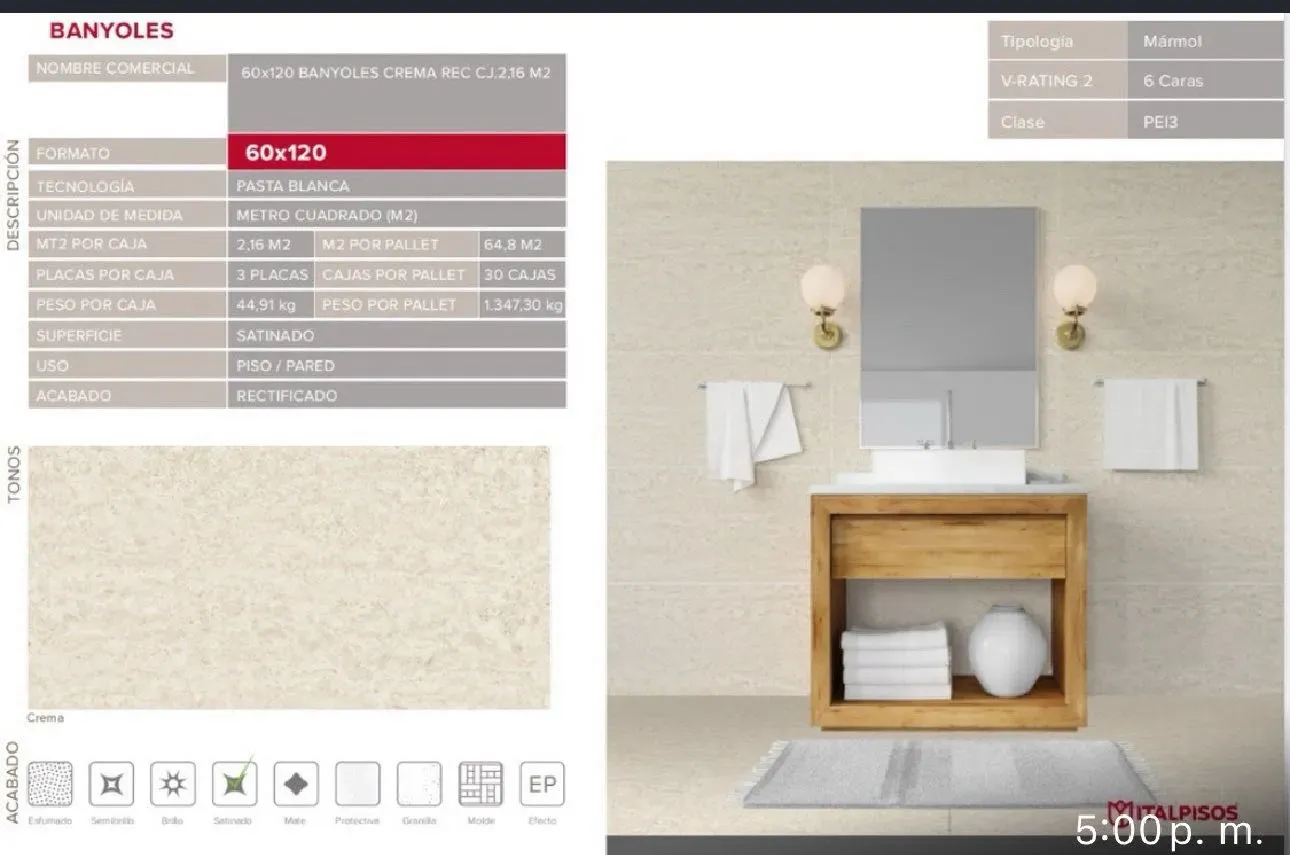 Porcelanato Italpisos banyolis crema satinado mate 60x120 2.16 x caja 13-44