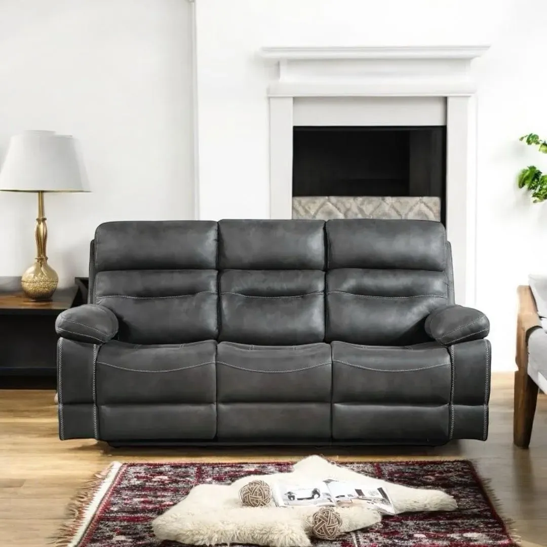 Añade elegancia y comodidad a tu sala con este sofá reclinable de 3 puestos en piel sintética color gris ratón. Ideal para relajarte después de un largo día, su diseño moderno y acabado de alta calidad lo convierten en el complemento perfecto para tu hogar. ¡Hazte con él hoy mismo!