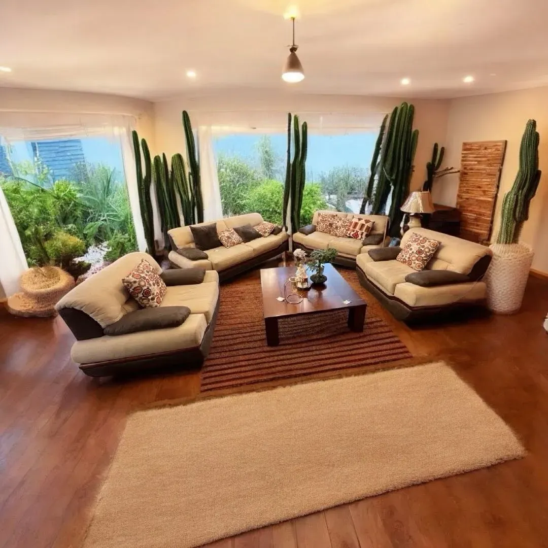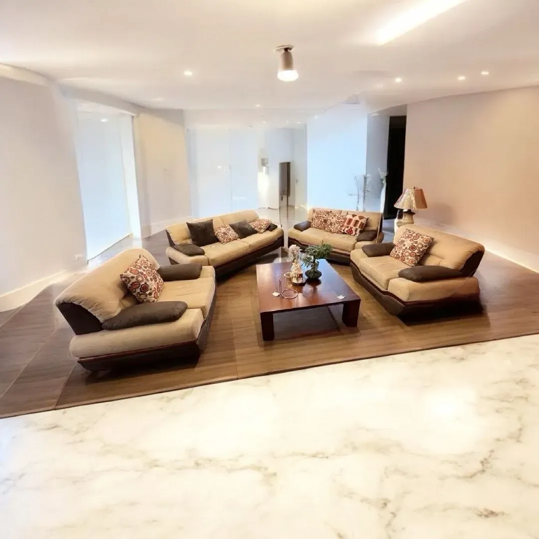 Embellece tu hogar con esta elegante sala clásica de madera combinada con tela beige. Ideal para crear un ambiente acogedor y sofisticado en tu sala de estar. Disfruta de la comodidad y estilo que este mueble aportará a tu espacio. ¡Haz de tu hogar un lugar único con esta sala exclusiva!