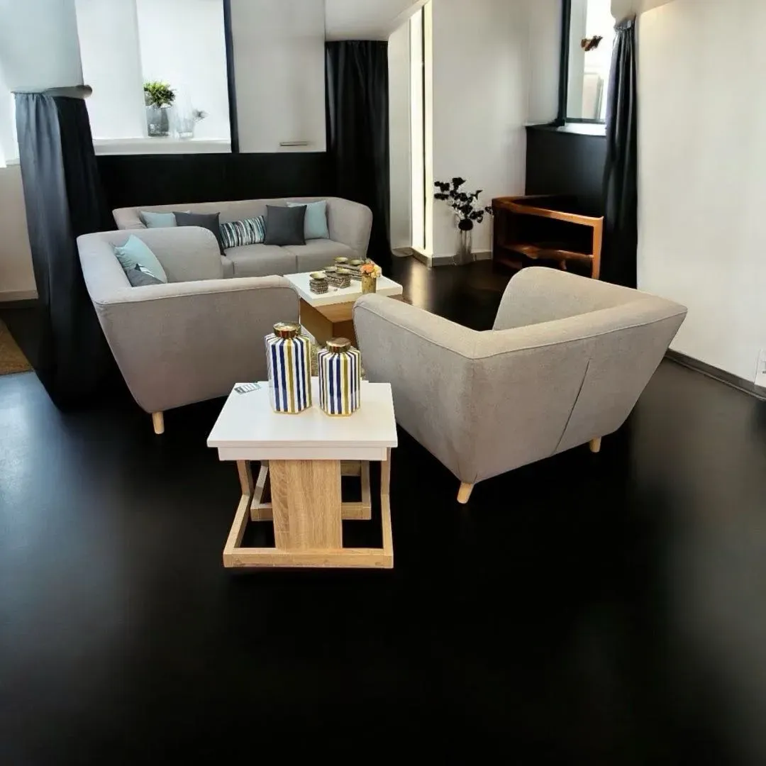 Renueva tu sala con el elegante Sofá Sala Vitage de 3 puestos en tela beige oscuro. Diseño moderno y cómodo para tu hogar. ¡No incluye mesa de centro! Añade estilo y confort a tu espacio de estar con este sofá de calidad.
