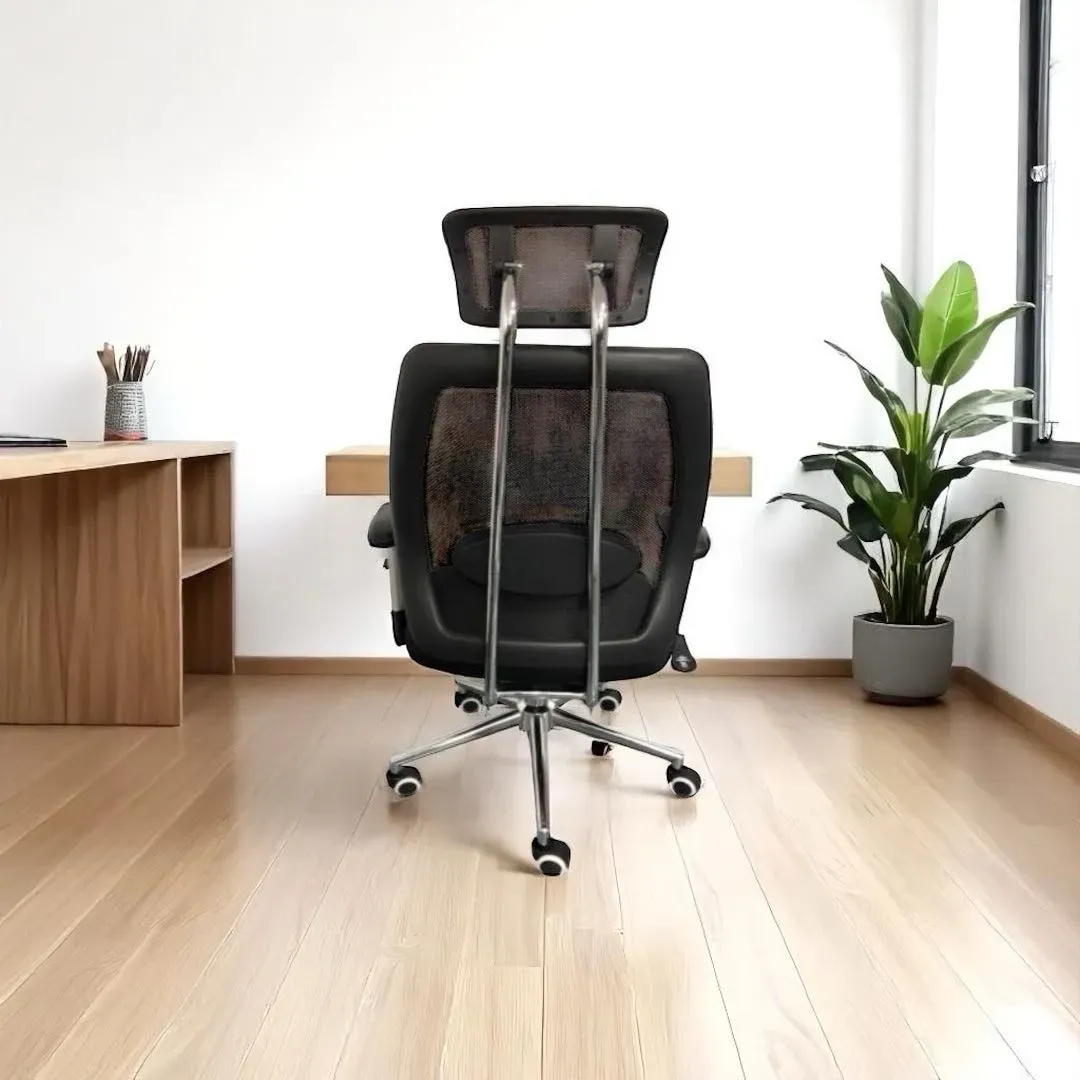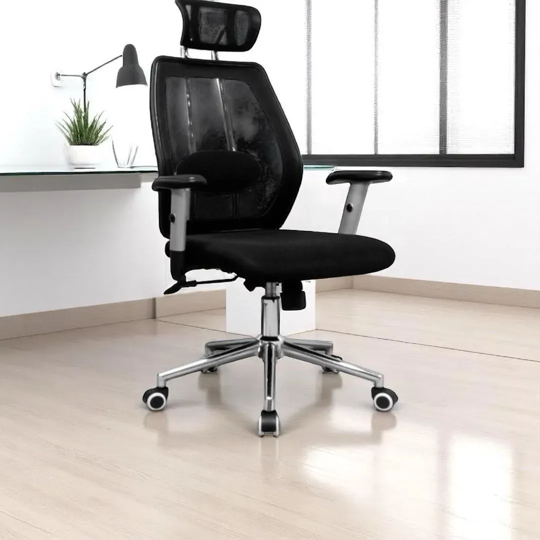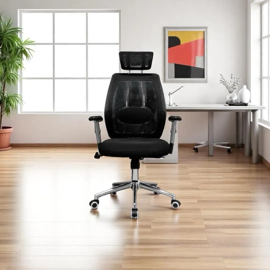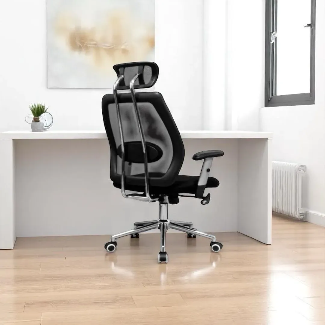 Sillón de oficina ergonómico KAORI CR 292933 en elegante color negro, ideal para brindar comodidad y estilo a tu espacio de trabajo. Fabricado con materiales de alta calidad, este sillón ofrece un soporte ergonómico para una postura saludable. ¡Haz de tus horas laborales una experiencia más placente...