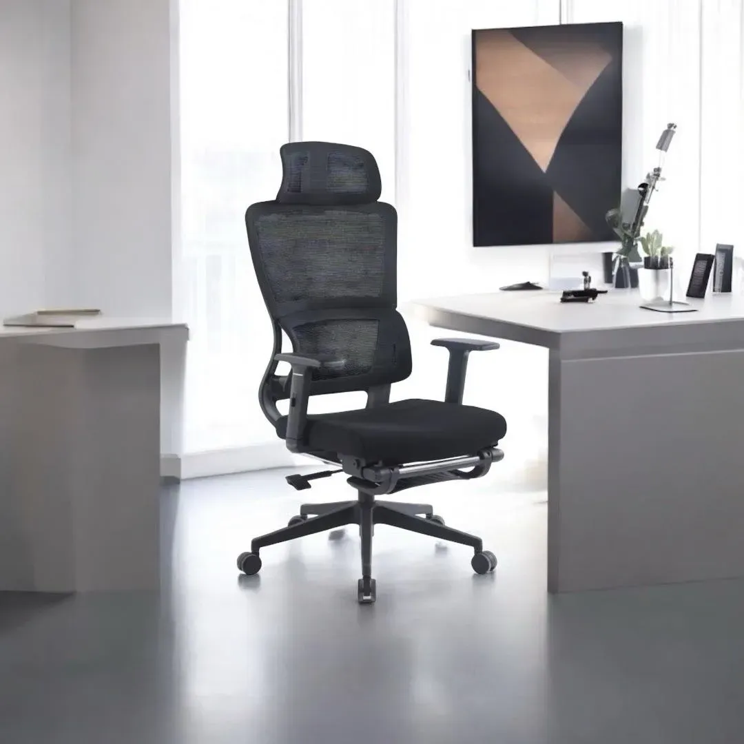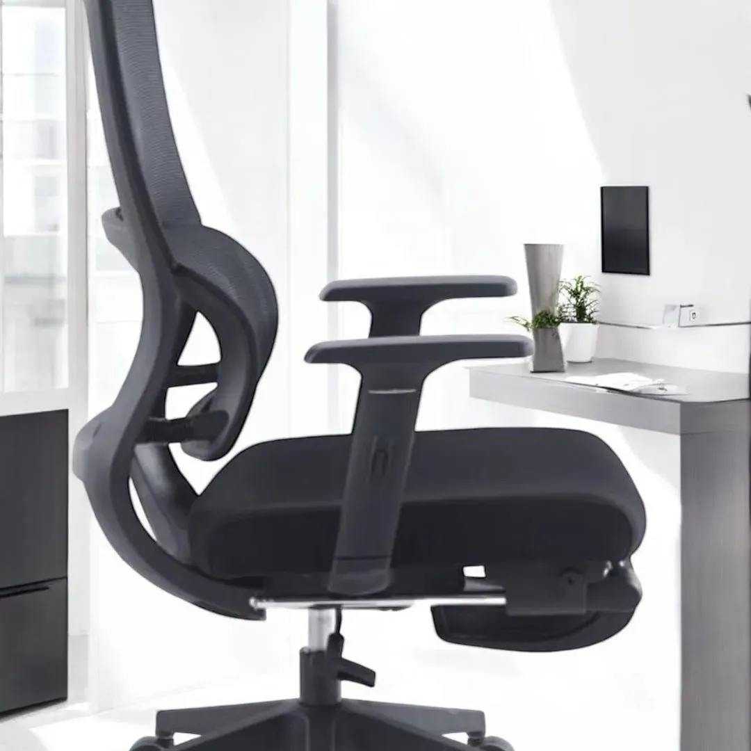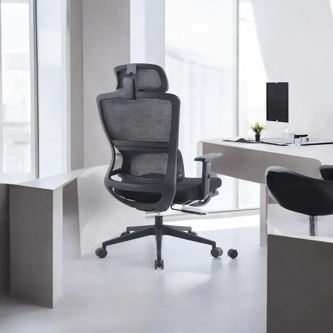 Sillón de oficina ergonómico LÍAM ALTO LEGREST en elegante color negro, ideal para brindar comodidad y soporte durante largas jornadas laborales. Con un diseño moderno y funcional, este sillón es la elección perfecta para tu espacio de trabajo en Ecuador.