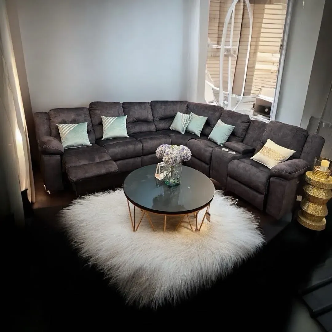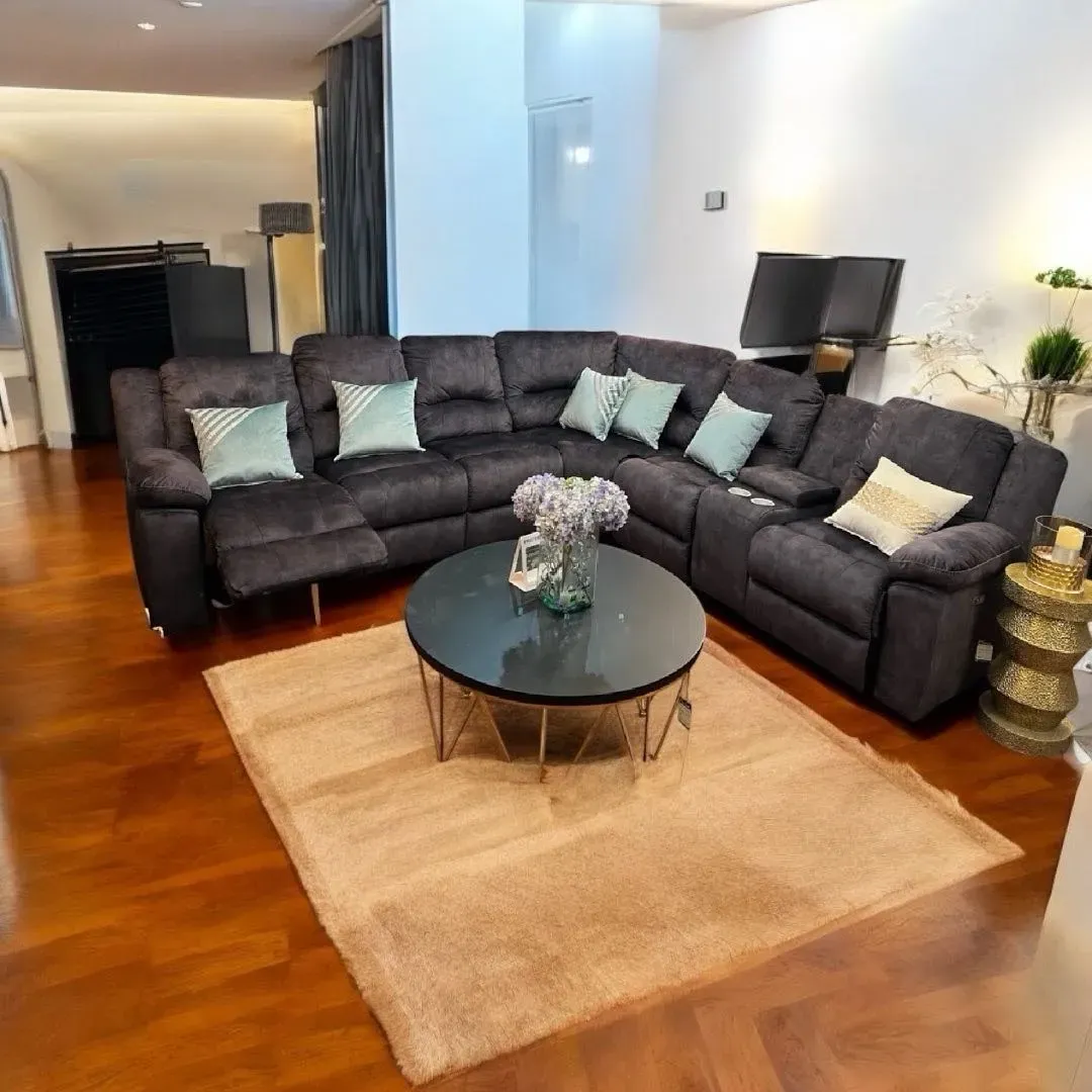 Sofá sala Recliner electrónica en L tela color café obscuro RECLI950