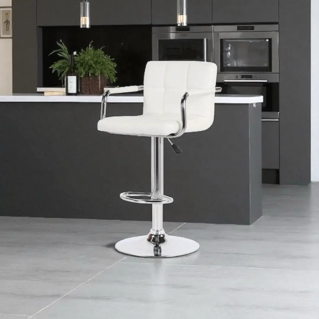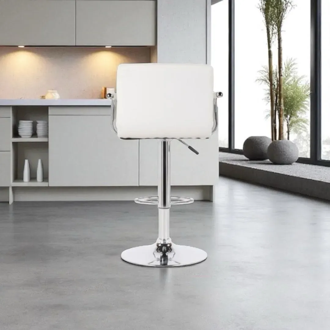 Taburete ajustable de color blanco con altura regulable desde 60cm hasta 80cm. Su asiento de tamaño A44.5*P41*H33*E2cm ofrece comodidad y versatilidad. Ideal para cualquier espacio, este taburete ajustable es la elección perfecta para tu hogar en Ecuador.