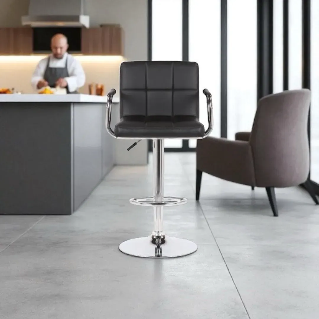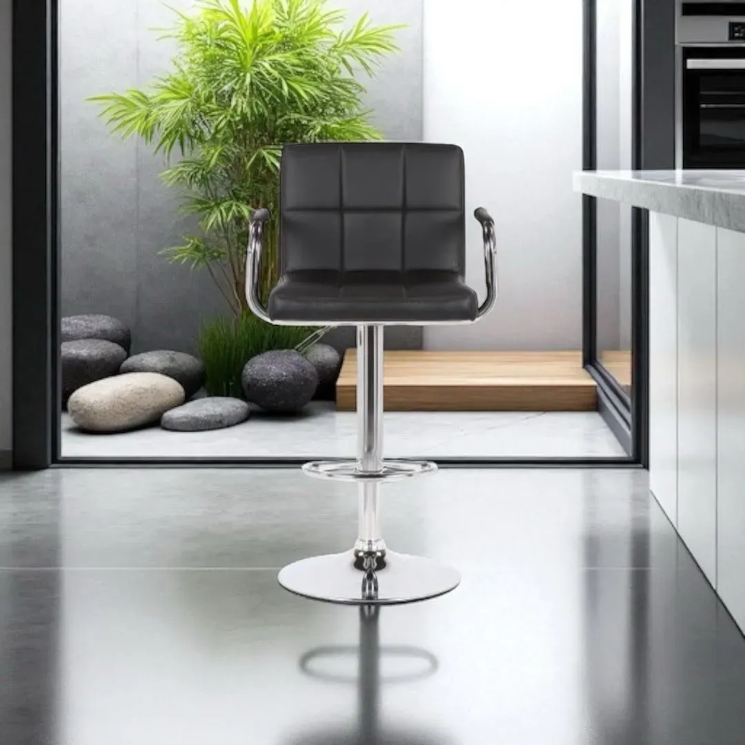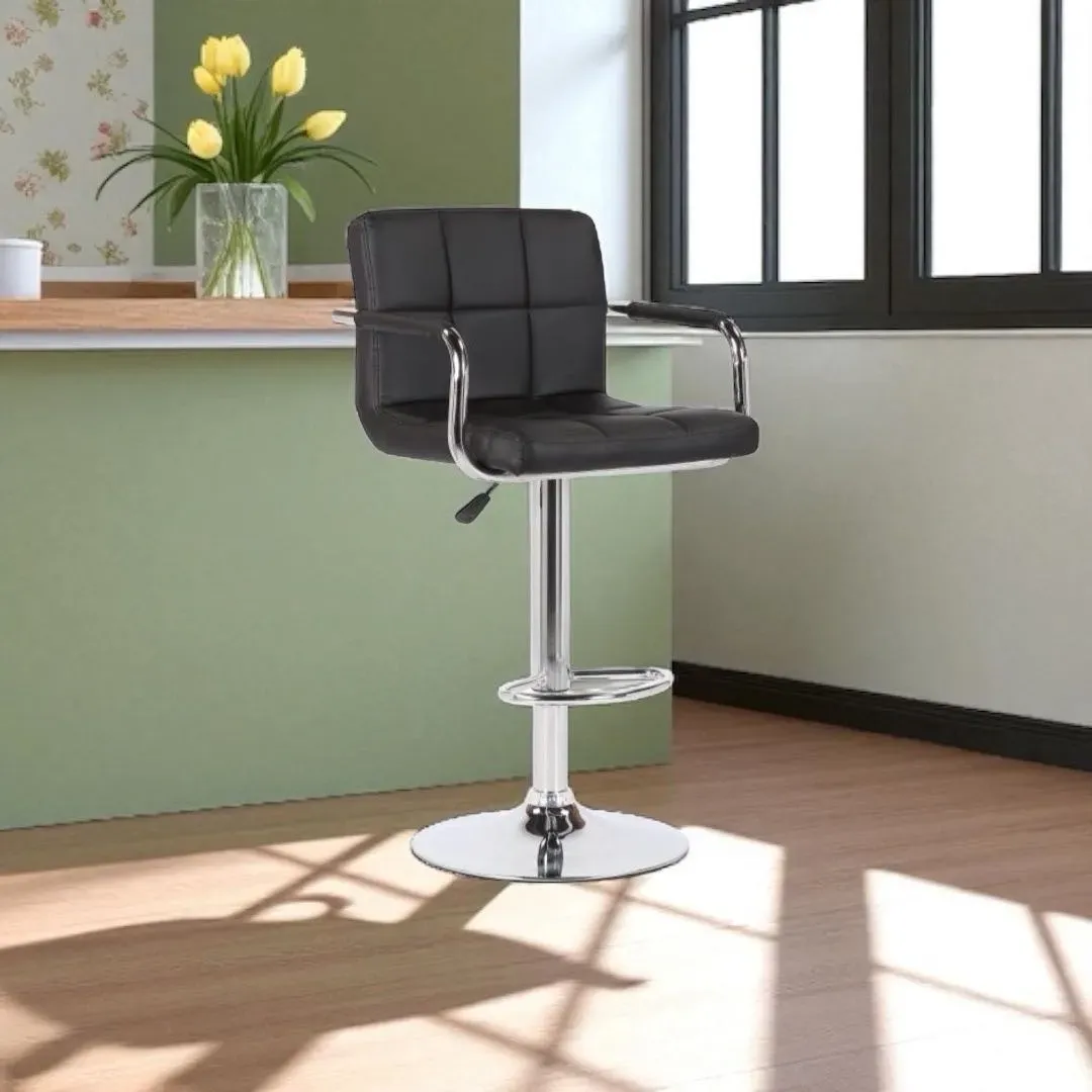 Taburete ajustable de color negro, con altura regulable desde 60cm hasta 80cm. Su asiento de tamaño A44.5*P41*H33*E2cm ofrece comodidad y versatilidad. Ideal para cualquier espacio y fácil de ajustar. Producto de calidad 404085 fabricado en Ecuador.