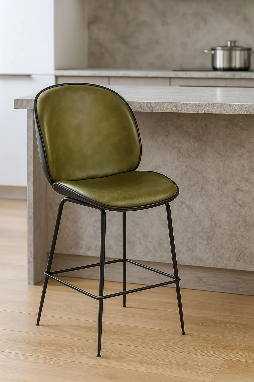 Este elegante taburete BAR en cuero oliva con estructura metálica negra es la combinación perfecta de estilo y comodidad para tu bar o cocina. Su diseño moderno y resistente lo convierte en una pieza imprescindible para cualquier espacio. ¡Hazte con el tuyo hoy mismo!
