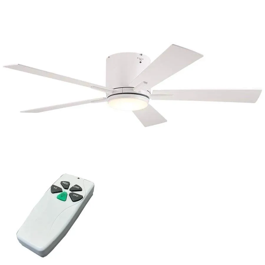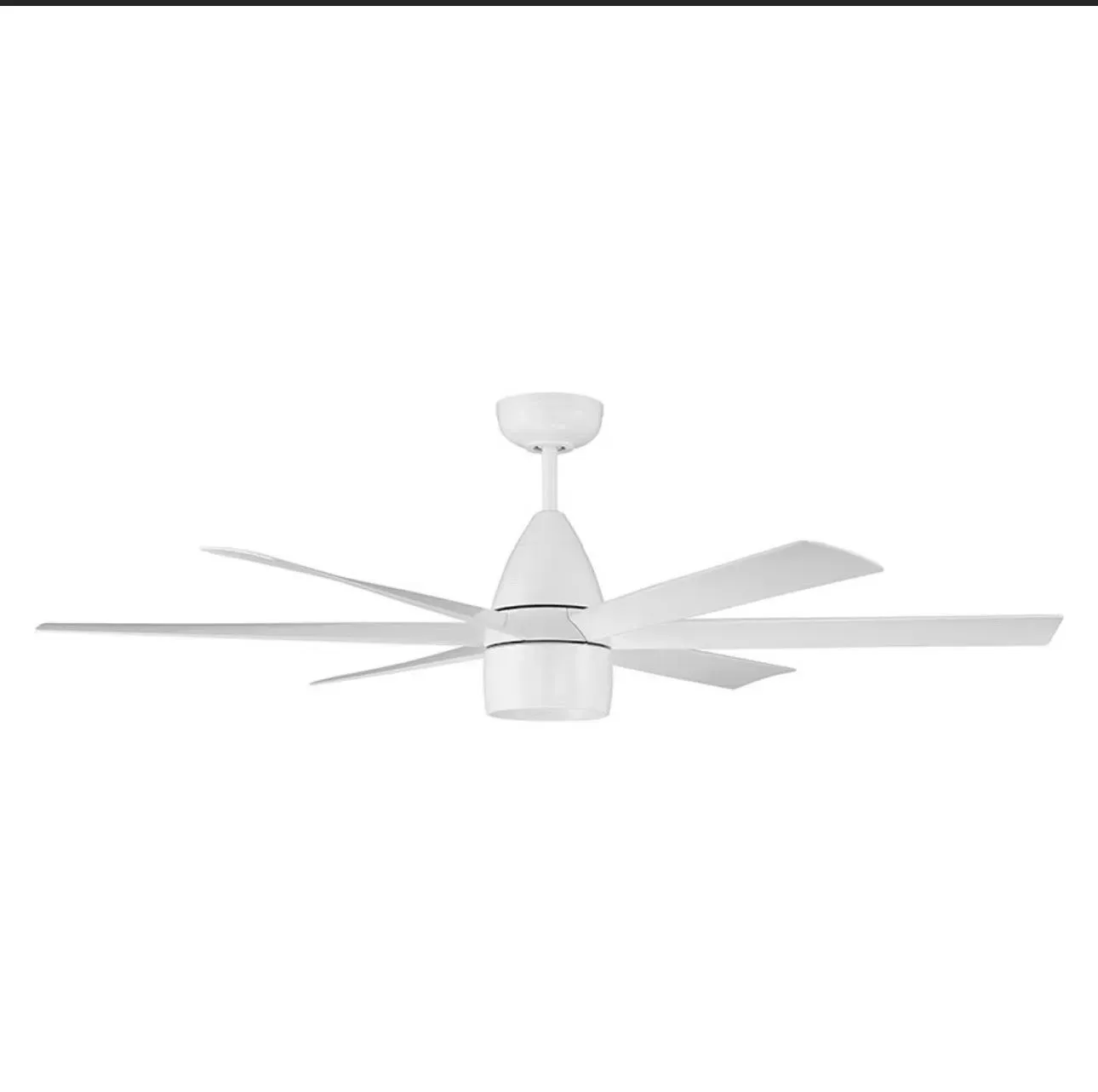 VENTILADOR DE TUMBADO MOTOR AC 52″ BLANCO +5 ASPAS BLANCAS CON LUZ LED Y CTRL REMOTO 9W (S/VARILLA) CFM 3950 38W