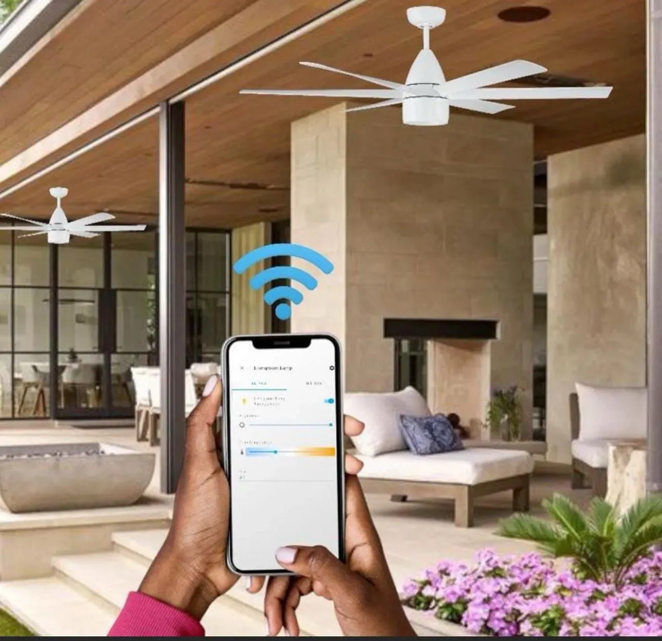 VENTILADOR DE TUMBADO QUIRK DC DE 54″ BLANCO + LED 18W + CONTROL REMOTO + WIFI CFM 7122